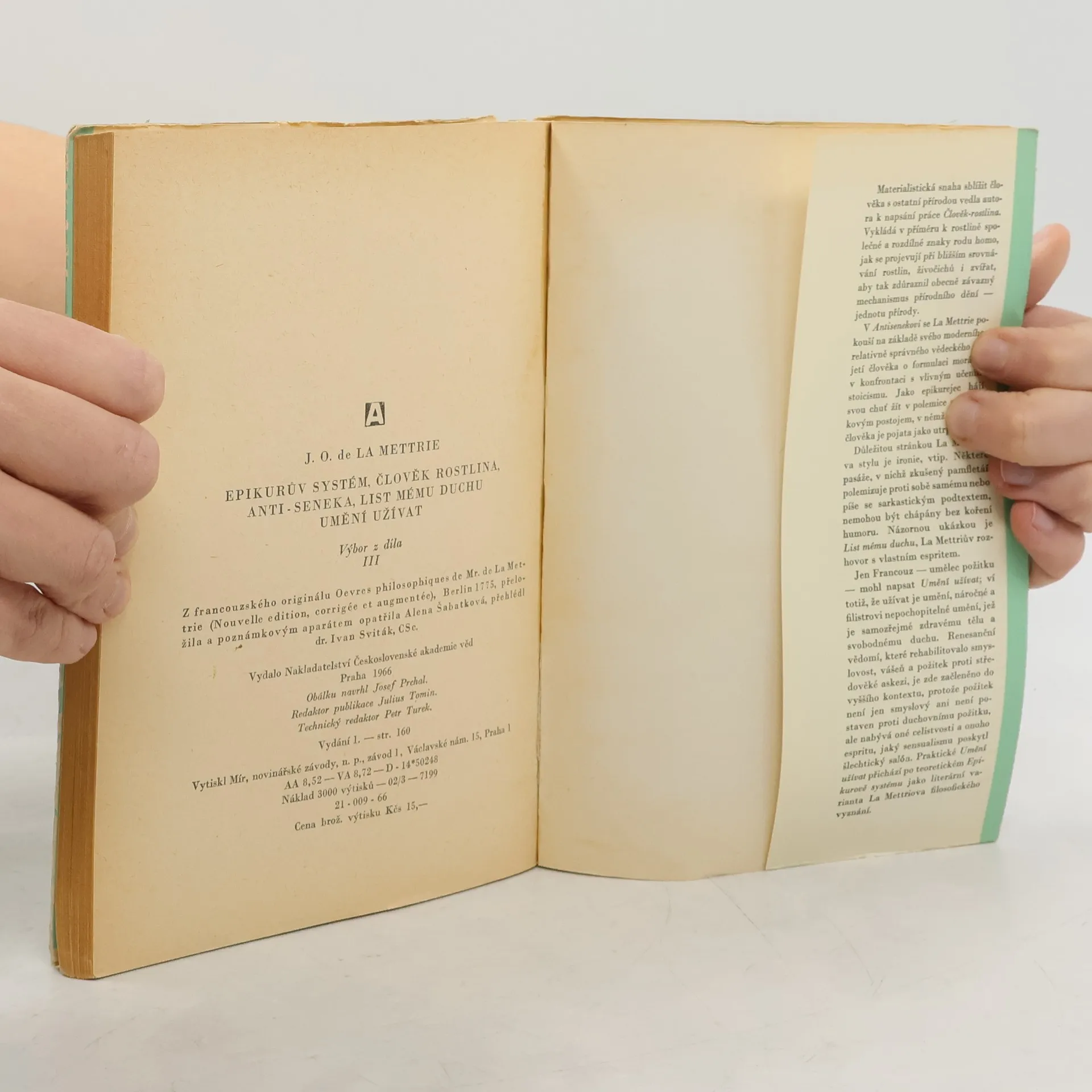 La mettrie: Epikurův systém, člověk-rostlina, anti-seneka, list mému duchu, umění užívat, Julien de Offray