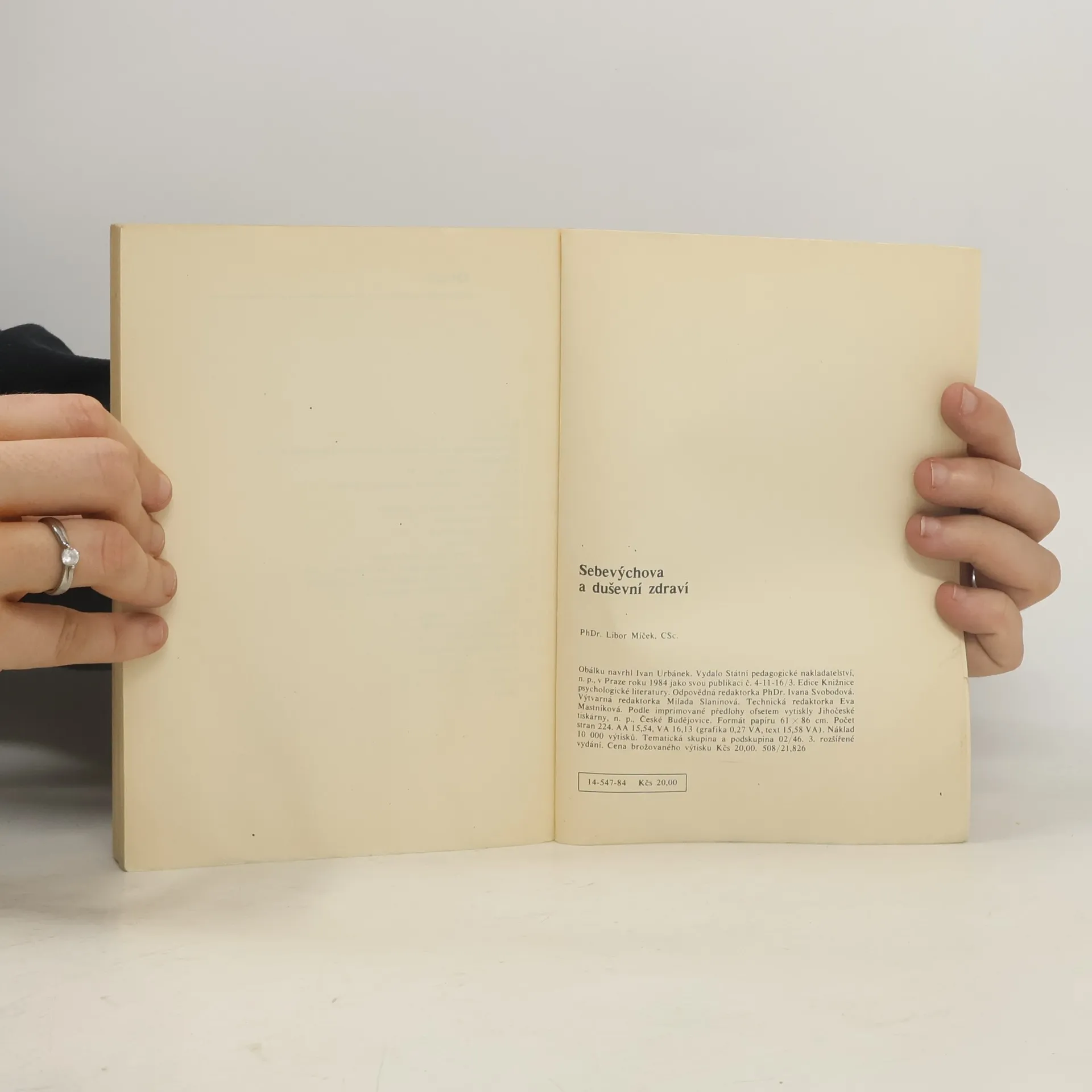 Cílem populárně vědecké práce je ukázat cesty a prostředky k upevnění duševního zdraví prostřednictvím sebevýchovy v oblasti poznávacích a emočních procesů. Autor se zabývá otázkami sebepoznávání, zlepšením koncentrace pozornosti, pozitivním ovlivňováním myšlenek a představ, problémy působení na vlastní citový život aj.