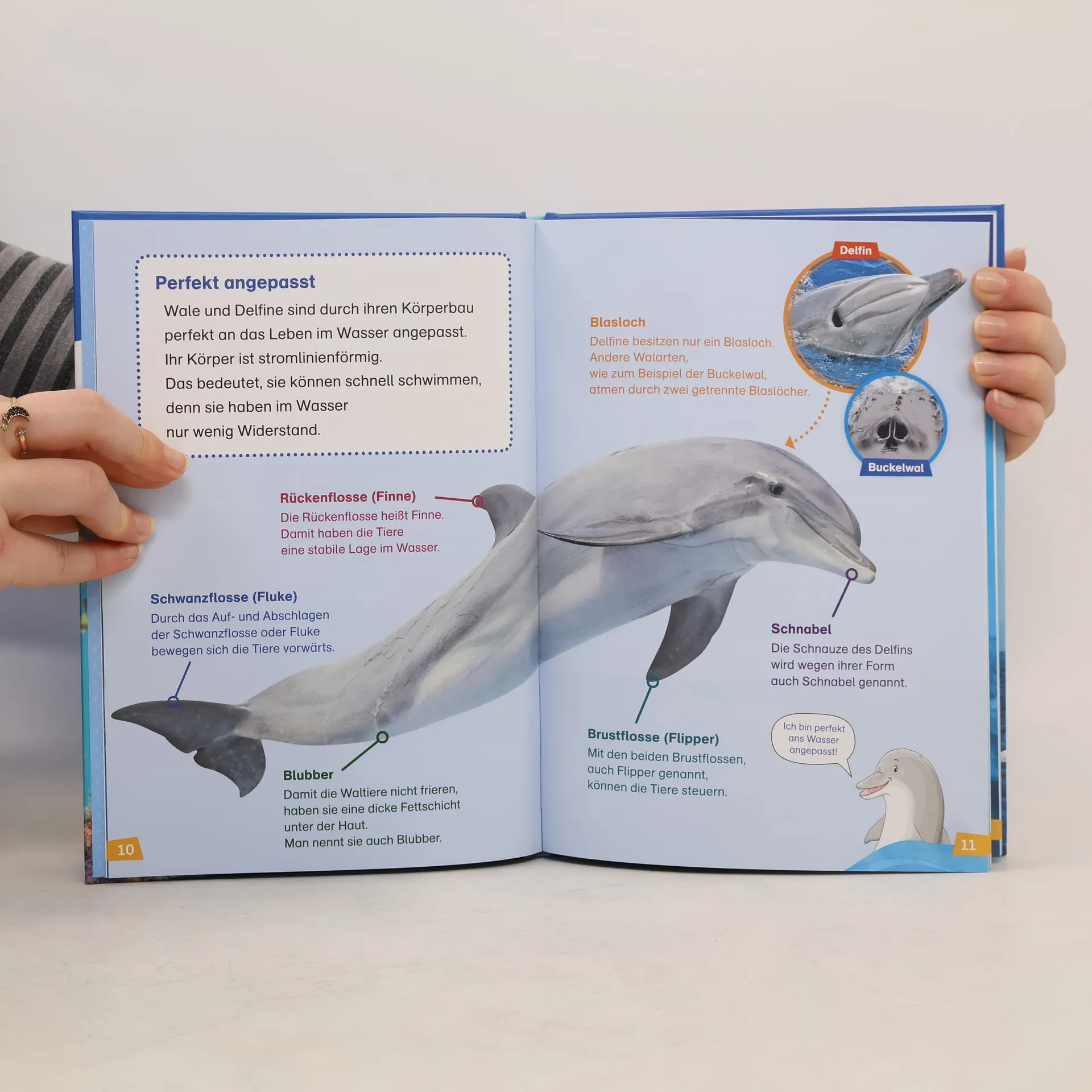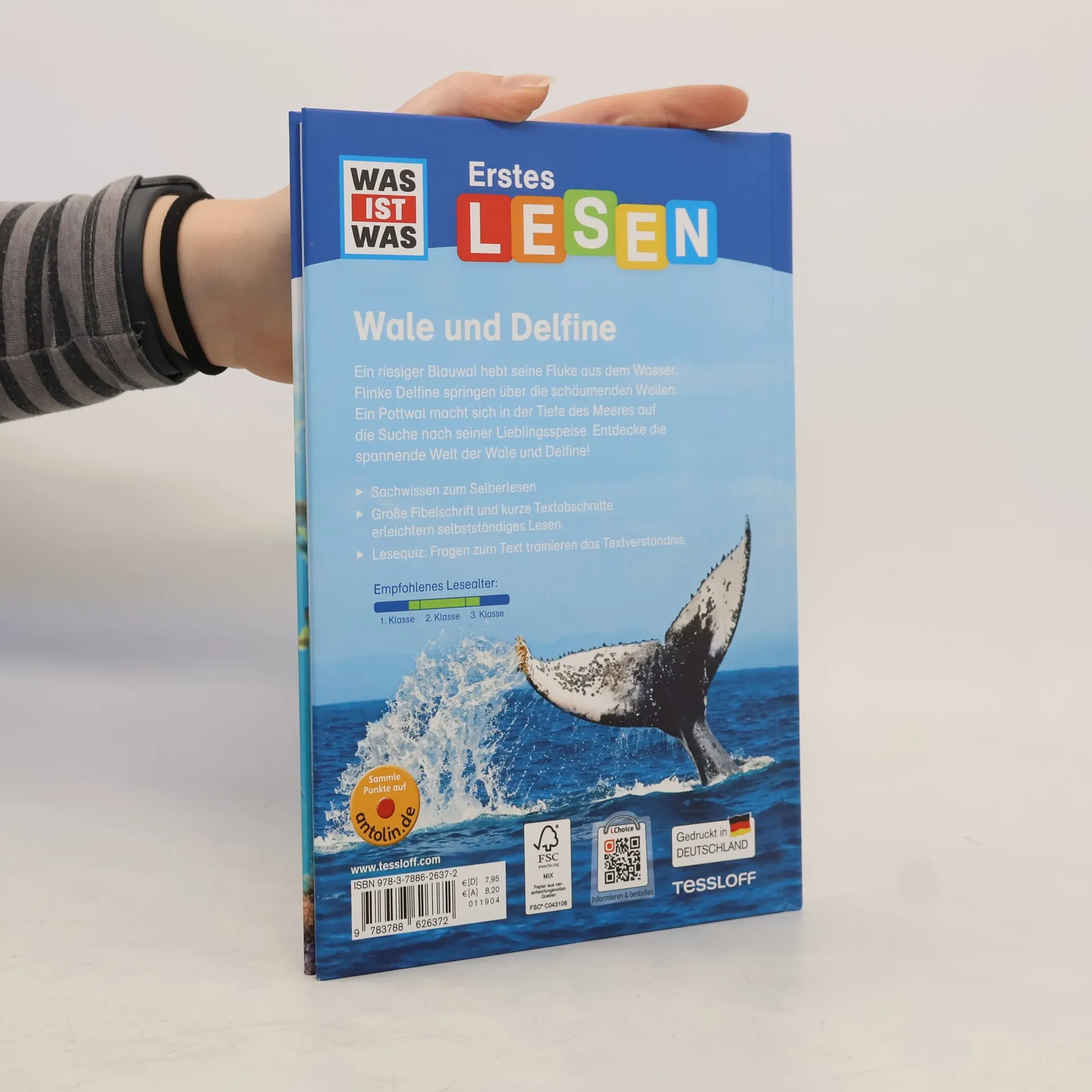 Ein riesiger Wal hebt seine mächtige Fluke aus dem Meer. Lustige Delfine springen flink über die schäumenden Wellen. Ein Pottwal macht sich in der Tiefe auf die Suche nach seiner Lieblingsspeise. An der Seite von Fini, dem kleinen Delfin, begeben sich Erstleser in die spannende Welt des Wissens. Die große Fibelschrift und das klare Layout sind speziell für Leseeinsteiger konzipiert, im Vordergrund stehen die Übersichtlichkeit und Lesbarkeit der Texte. Alles verstanden, Neues gelernt? Das Lesequiz gibt Antwort.