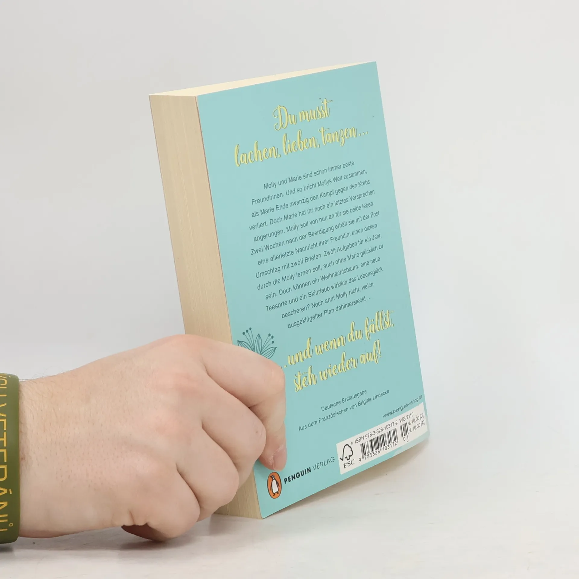 Der Buchhändler- und Bloggerliebling aus Frankreich Molly und Marie sind schon immer beste Freundinnen. Und so bricht Mollys Welt zusammen, als Marie Ende zwanzig den Kampf gegen den Krebs verliert. Doch Marie hat ihr noch ein letztes Versprechen abgerungen. Molly soll von nun an für sie beide leben. Zwei Wochen nach der Beerdigung erhält sie mit der Post eine allerletzte Nachricht ihrer Freundin: einen dicken Umschlag mit 12 Briefen. Zwölf Aufgaben für ein Jahr, durch die Molly lernen soll, auch ohne Marie glücklich zu sein. Doch können ein Weihnachtsbaum, eine neue Teesorte und ein Skiurlaub wirklich das Lebensglück bescheren? Noch ahnt Molly nicht, welch ausgeklügelter Plan dahintersteckt …