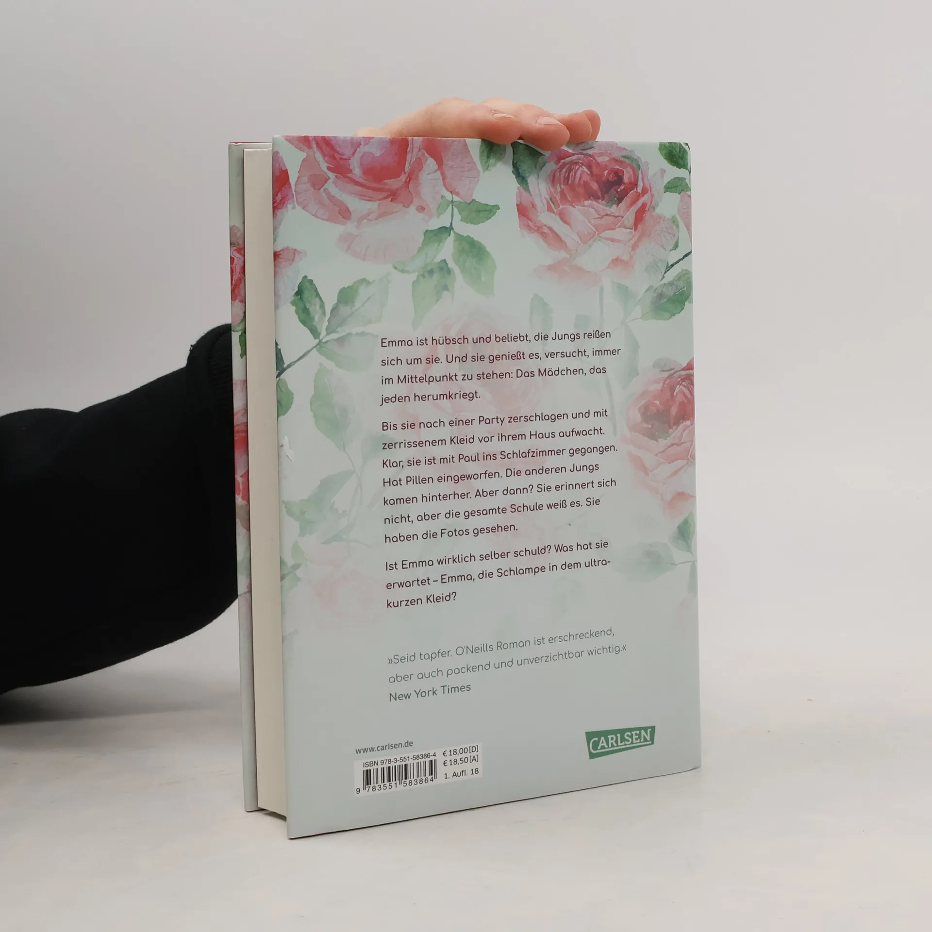 Emma ist hübsch und beliebt, die Jungs reißen sich um sie. Und sie genießt es, versucht, immer im Mittelpunkt zu stehen: Das Mädchen, das jeden herumkriegt. Bis sie nach einer Party zerschlagen und mit zerrissenem Kleid vor ihrem Haus aufwacht. Klar, sie ist mit Paul ins Schlafzimmer gegangen. Hat Pillen eingeworfen. Die anderen Jungs kamen hinterher. Aber dann? Sie erinnert sich nicht, aber die gesamte Schule weiß es. Sie haben die Fotos gesehen. Ist Emma wirklich selber schuld? Was hat sie erwartet – Emma, die Schlampe in dem ultrakurzen Kleid?   Ein aufwühlendes, vielfach preisgekröntes Buch.