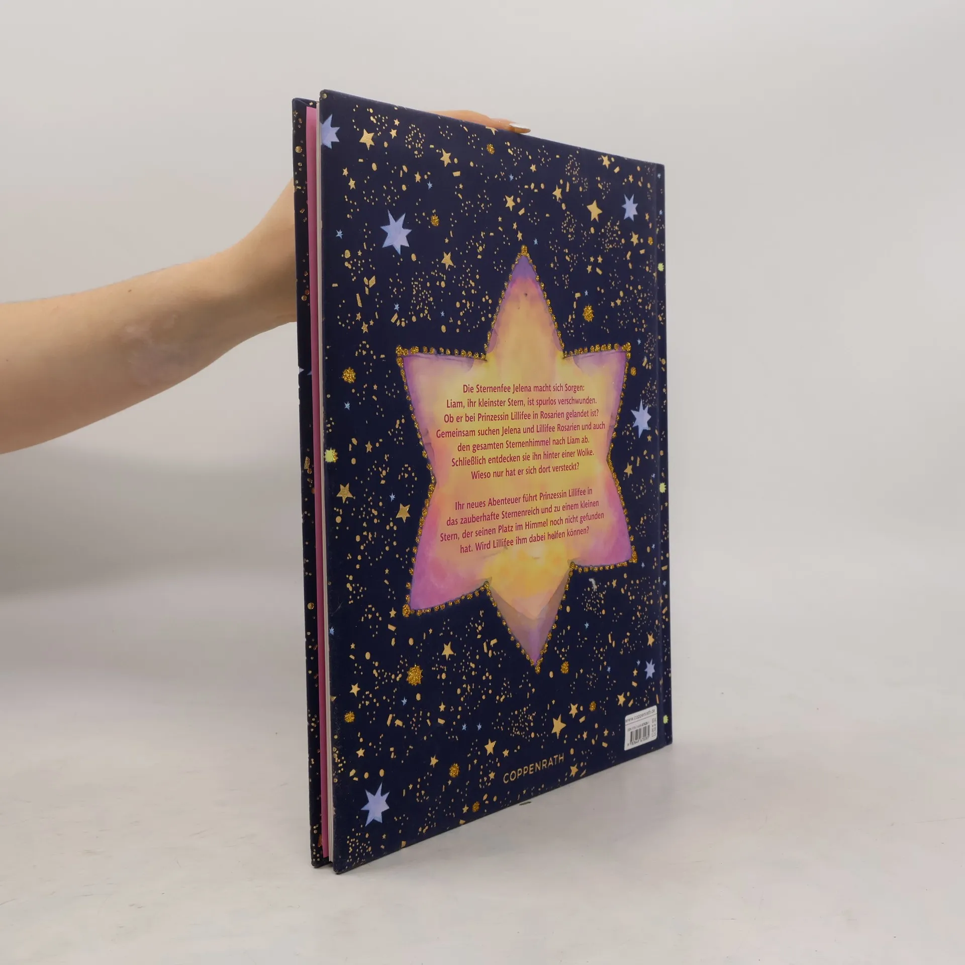 An einem heißen Sommertag entdecken Prinzessin Lillifee und ihre Freunde eine seltsame Glitzerwolke im Zaubergarten. Darin befindet sich die Sternenfee Jelena. Sie macht sich Sorgen: Liam, ihr kleinster Stern, ist spurlos verschwunden. Gemeinsam suchen Jelena und Lillifee ihr Feenreich Rosarien und auch den gesamten Sternenhimmel nach Liam ab. Ob sie das kleine Sternchen wiederfinden und herausfinden werden, wieso Liam verschwunden ist …? Prinzessin Lillifees neues Abenteuer mit märchenhaft bezaubernden Illustrationen von Monika Finsterbusch