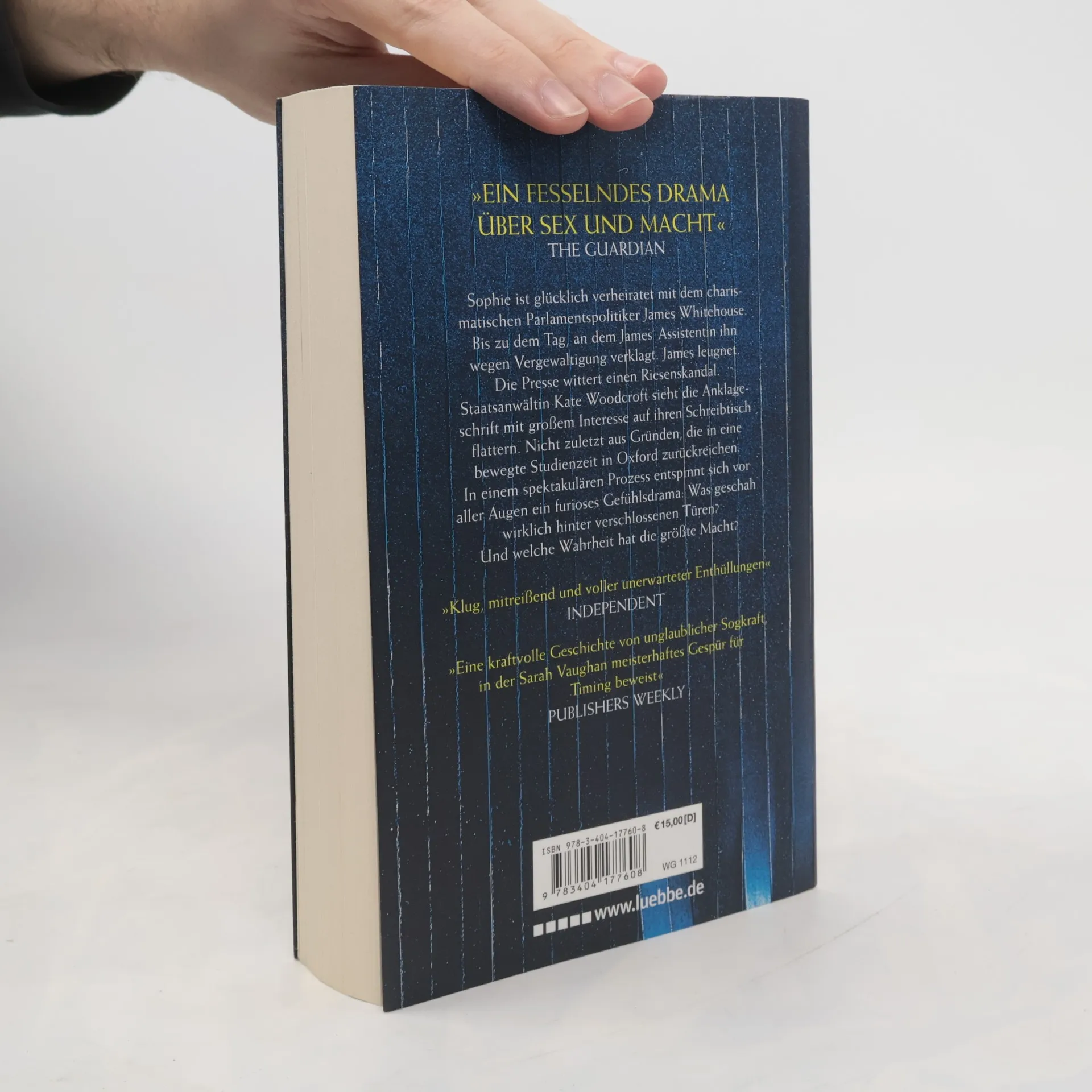 „Ein fesselndes Drama über Sex und Macht“ The Guardian Sophie ist glückliche Ehefrau des charismatischen Parlamentspolitikers James Whitehouse. Bis dieser ihr eine Affäre mit seiner Assistentin gesteht. Die ihn nun wegen Vergewaltigung verklagt. James leugnet und setzt auf die Loyalität des Premierministers, der ihm noch einen Gefallen schuldet. Staatsanwältin Kate sieht die Anklageschrift mit großem Interesse auf ihren Schreibtisch flattern. Aus Gründen, die in ihre Zeit in Oxford zurückreichen. Ein spektakulärer Prozess stellt Loyalitäten auf den Prüfstand. Und verändert nicht nur Sophies und James‘ Leben ... „Klug, mitreißend und voller unerwarteter Enthüllungen“ Independent „Eine kraftvolle Geschichte von unglaublicher Sogkraft, in der Sarah Vaughan meisterhaftes Gespür für Timing beweist“ Publishers Weekly „Ein beeindruckender Roman - intelligent und von großer Sogkraft“ Kirkus „Vielschichtig, geheimnisvoll, überwältigend“ What’s better than Books „Ein raffiniert gestrickter Plot mit sorgfältig gezeichneten, lebensechten Figuren“ Woman & Home