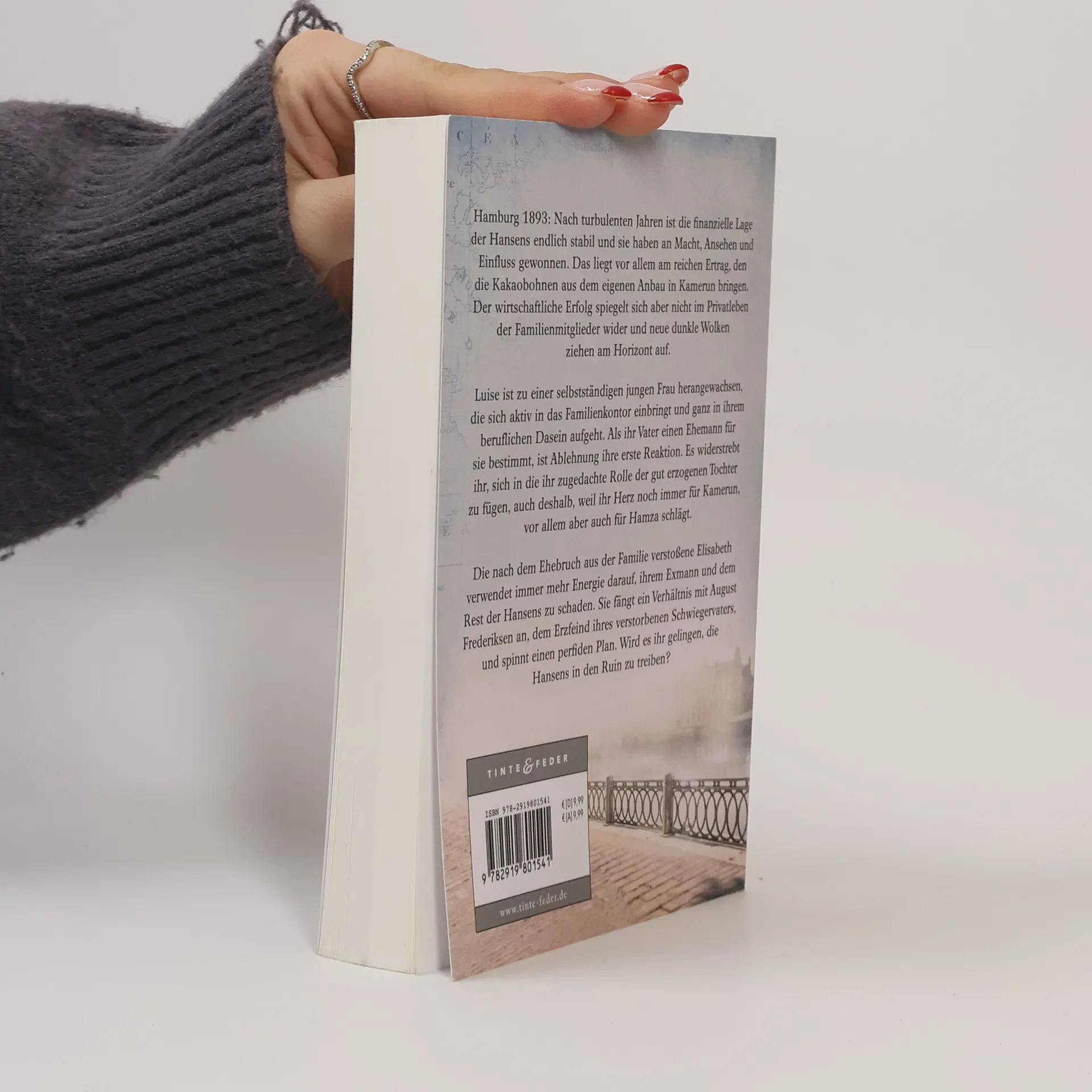 Die fesselnde Fortsetzung der Hansen-Saga von Bestsellerautorin Ellin Carsta. Hamburg 1893: Nach turbulenten Jahren ist die finanzielle Lage der Hansens endlich stabil und sie haben an Macht, Ansehen und Einfluss gewonnen. Das liegt vor allem am reichen Ertrag, den die Kakaobohnen aus dem eigenen Anbau in Kamerun bringen. Der wirtschaftliche Erfolg spiegelt sich aber nicht im Privatleben der Familienmitglieder wider und neue dunkle Wolken ziehen am Horizont auf. Luise ist zu einer selbstständigen jungen Frau herangewachsen, die sich aktiv in das Familienkontor einbringt und ganz in ihrem beruflichen Dasein aufgeht. Als ihr Vater einen Ehemann für sie bestimmt, ist Ablehnung ihre erste Reaktion. Es widerstrebt ihr, sich in die ihr zugedachte Rolle der gut erzogenen Tochter zu fügen, auch deshalb, weil ihr Herz noch immer für Kamerun, vor allem aber auch für Hamza schlägt. Die nach dem Ehebruch aus der Familie verstoßene Elisabeth verwendet immer mehr Energie darauf, ihrem Exmann und dem Rest der Hansens zu schaden. Sie fängt ein Verhältnis mit August Frederiksen an, dem Erzfeind ihres verstorbenen Schwiegervaters, und spinnt einen perfiden Plan. Wird es ihr gelingen, die Hansens in den Ruin zu treiben?