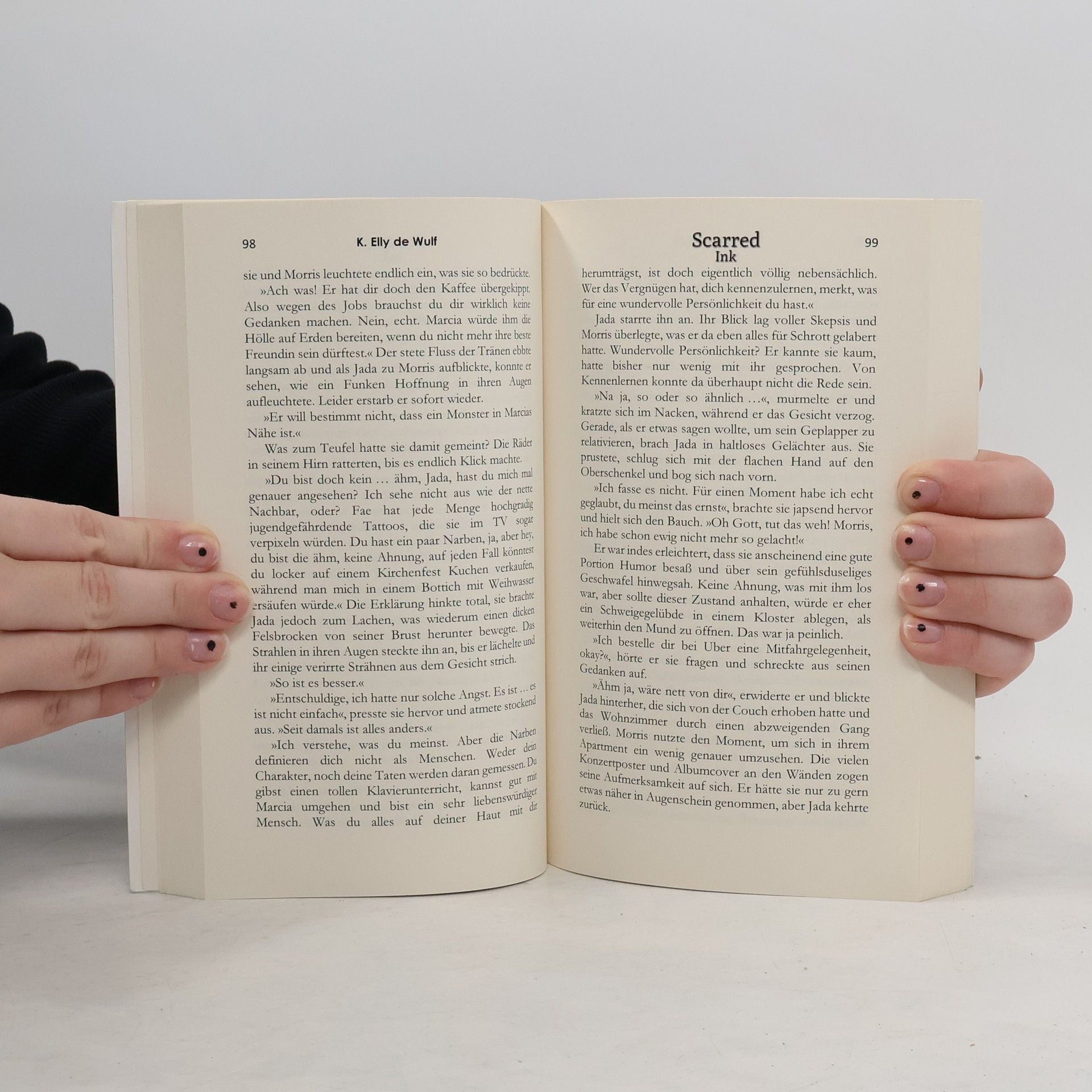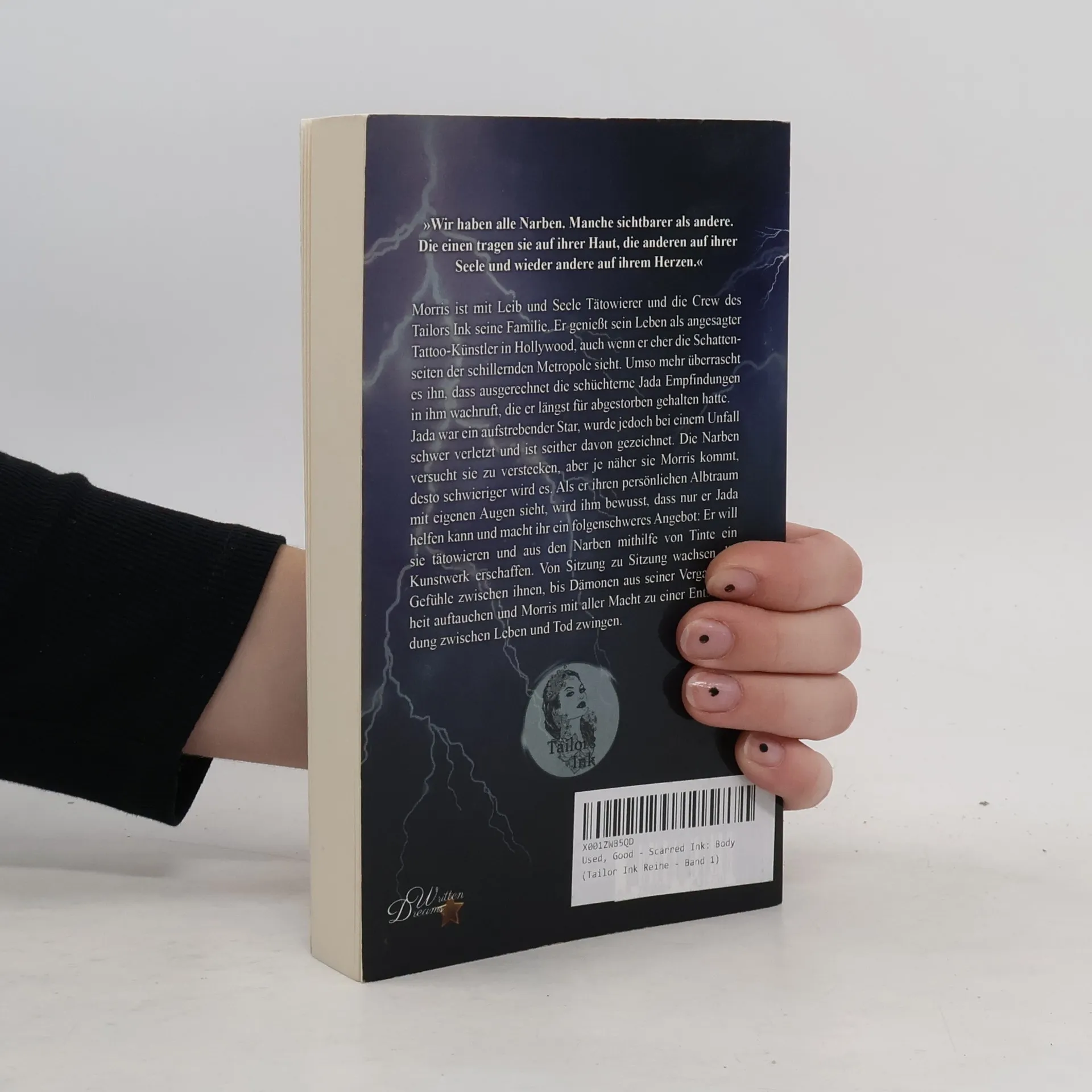 »Wir haben alle Narben. Manche sichtbarer als andere. Die einen tragen sie auf ihrer Haut, die anderen auf ihrer Seele und wieder andere auf ihrem Herzen.« Morris ist mit Leib und Seele Tätowierer und die Crew des Tailors Ink seine Familie. Er genießt sein Leben als angesagter Tattoo-Künstler in Hollywood, auch wenn er eher die Schattenseiten der schillernden Metropole sieht. Umso mehr überrascht es ihn, dass ausgerechnet die schüchterne Jada Empfindungen in ihm wachruft, die er längst für abgestorben gehalten hatte. Jada war ein aufstrebender Star, wurde jedoch bei einem Unfall schwer verletzt und ist seither davon gezeichnet. Die Narben versucht sie zu verstecken, aber je näher sie Morris kommt, desto schwieriger wird es. Als er ihren persönlichen Albtraum mit eigenen Augen sieht, wird ihm bewusst, dass nur er Jada helfen kann und macht ihr ein folgenschweres Angebot: Er will sie tätowieren und aus den Narben mithilfe von Tinte ein Kunstwerk erschaffen. Von Sitzung zu Sitzung wachsen die Gefühle zwischen ihnen, bis Dämonen aus seiner Vergangenheit auftauchen und Morris mit aller Macht zu einer Entscheidung zwischen Leben und Tod zwingen.