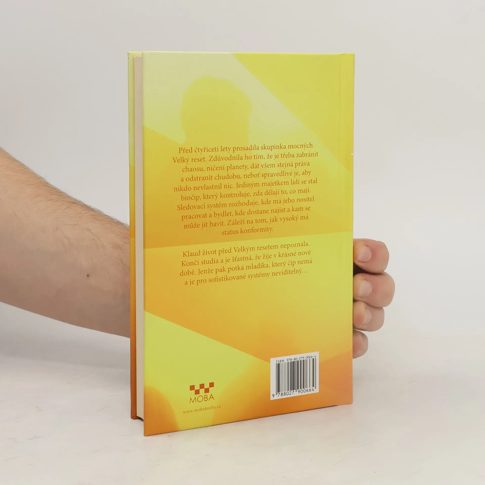 Před třiceti lety prosadila skupinka mocných Velký reset. Zdůvodnila ho tím, že je třeba zabránit chaosu, ničení planety, dát všem stejná práva a odstranit chudobu, neboť spravedlivé je, aby nikdo nevlastnil nic. Jediným majetkem lidí se stal biočip, který kontroluje, zda dělají to, co mají. Sledovací systém rozhoduje, kde má jeho nositel pracovat a bydlet, kde dostane najíst a kam se může jít bavit. Záleží na tom, jak vysoký má index konformity. Martina život před Velkým resetem nepoznala. Končí studia a je šťastná, že žije v krásné nové době. Jenže pak potká mladíka, který čip nemá a je pro sofistikované systémy neviditelný...