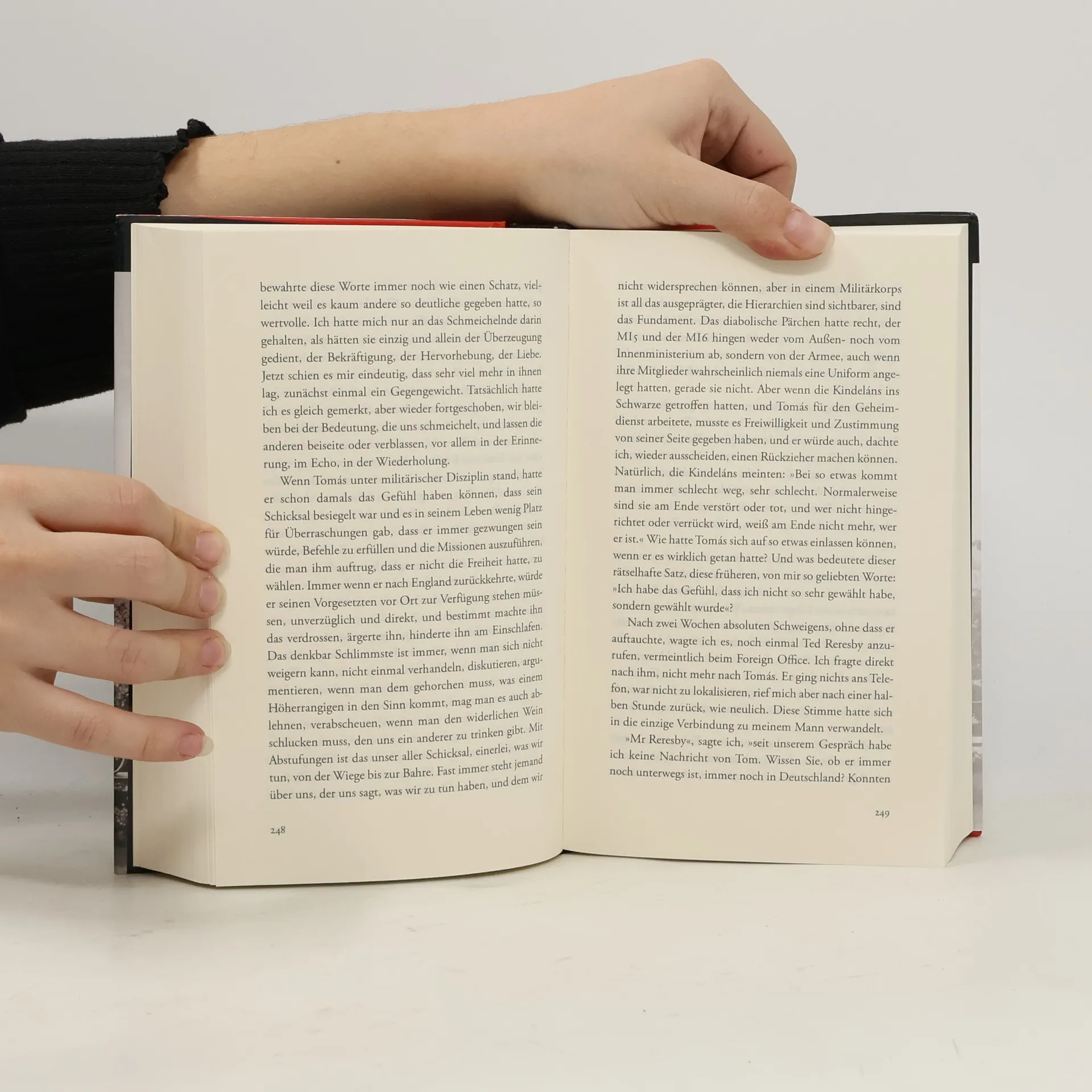 Eine große Liebe zerrissen durch ein rätselhaftes Doppelleben – der große spanische Erzähler und Bestsellerautor Javier Marías in Höchstform. Tomás – halb Spanier, halb Engländer – ist ein Sprachentalent und verliebt in die junge Berta Isla. Sehr früh sind sich beide sicher, dass sie ein gemeinsames Leben wollen. Als er zum Studium nach Oxford geht, bleibt sie jedoch in Madrid zurück – nicht ahnend, dass Tomás dort einen schwerwiegenden Fehler begeht, der beide in eine verhängnisvolle Lage bringt. Um einer Haftstrafe zu entgehen, beginnt er, heimlich für den britischen Geheimdienst zu arbeiten. Schon bald nach seiner Rückkehr vermutet Berta, die inzwischen seine Ehefrau ist, dass Tomás ein Doppelleben führt. Als er dann zu Beginn des Falklandkrieges plötzlich spurlos verschwindet, beginnt sie endgültig zu hinterfragen, wen sie geheiratet hat. Eine Geschichte über das Warten, die Zerbrechlichkeit der Liebe und die Zerrissenheit zwischen Krieg, Geheimnissen und Loyalität.