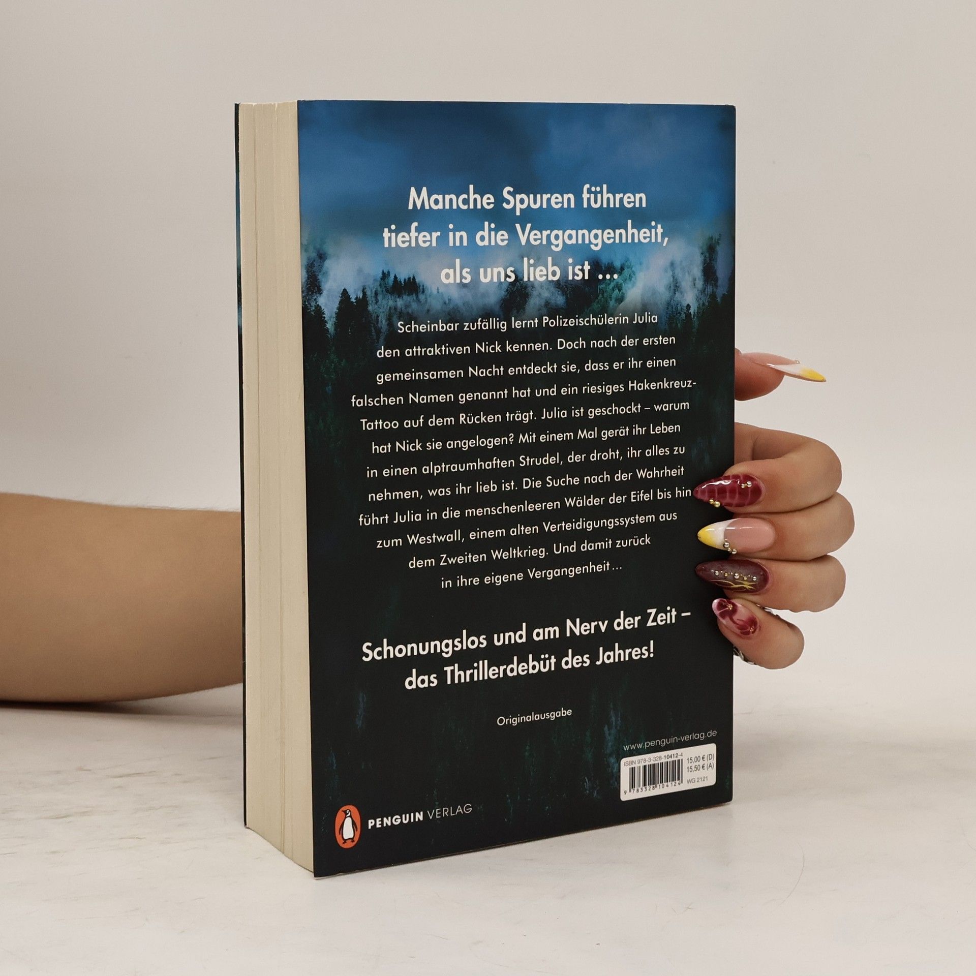 Manche Spuren führen tiefer in die Vergangenheit, als uns lieb ist … Scheinbar zufällig lernt Polizeischülerin Julia den attraktiven Nick kennen. Doch nach der ersten gemeinsamen Nacht entdeckt sie, dass er ihr einen falschen Namen genannt hat und ein riesiges Hakenkreuz-Tattoo auf dem Rücken trägt. Julia ist geschockt – warum hat Nick sie angelogen? Mit einem Mal gerät ihr Leben in einen alptraumhaften Strudel, der droht, ihr alles zu nehmen, was ihr lieb ist. Die Suche nach der Wahrheit führt Julia in die menschenleeren Wälder der Eifel bis hin zum Westwall, einem alten Verteidigungssystem aus dem Zweiten Weltkrieg. Und damit zurück in ihre eigene Vergangenheit ...