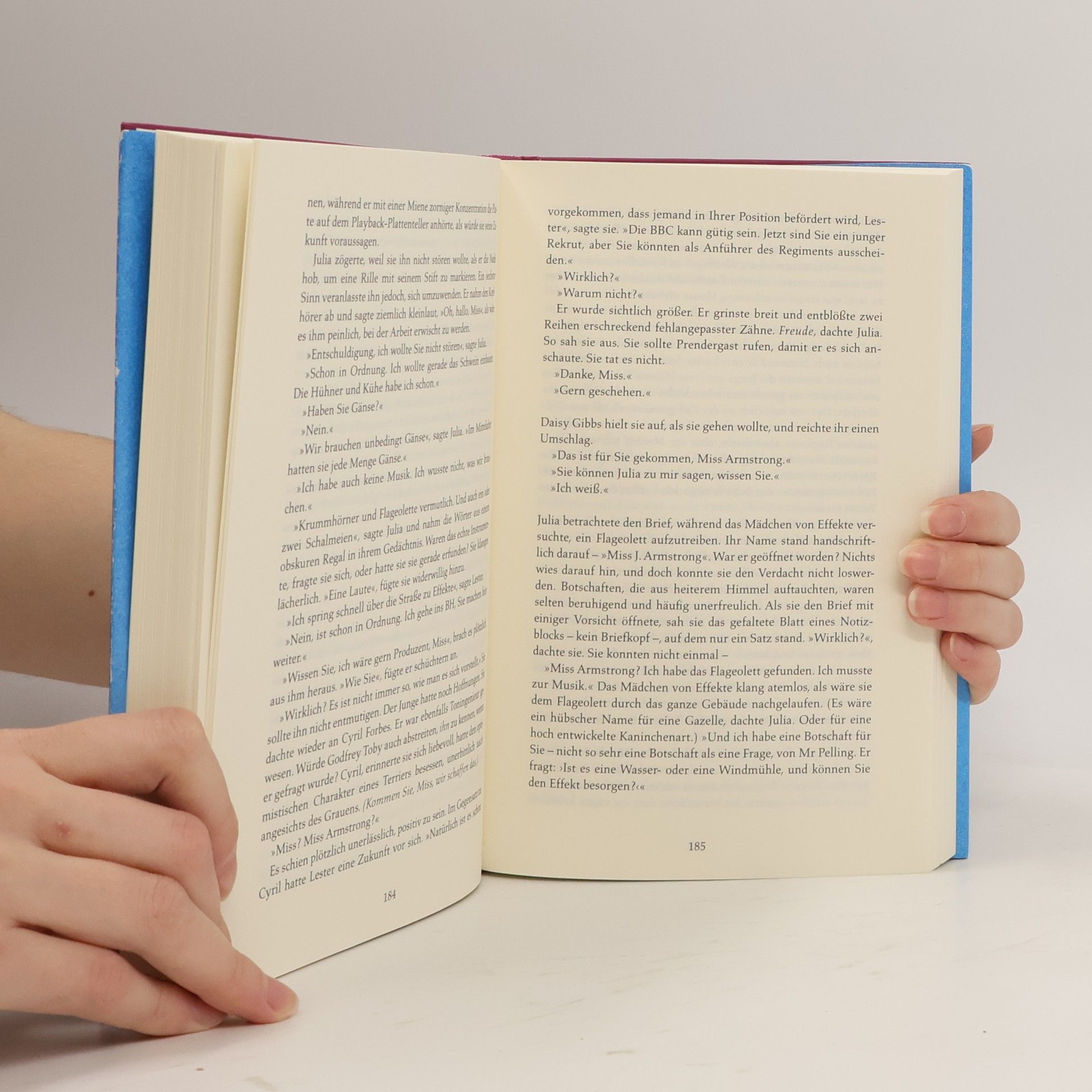 Im Jahr 1940 wird die 18-jährige Julia Armstrong unfreiwillig in die Welt der Spionage hineingezogen. Ihr Auftrag besteht darin, Protokolle von Treffen britischer Nazi-Sympathisanten zu erstellen, die sie heimlich belauschen kann, da ein MI5-Agent in die Gruppe eingeschleust wurde. Was anfangs wie ein Abenteuer erscheint, entpuppt sich schnell als gefährlich: Ein Mensch ist gestorben. Nach dem Ende des Zweiten Weltkriegs hofft Julia, dass diese Zeit der Vergangenheit angehört. Doch zehn Jahre später, als sie Redakteurin beim BBC-Schulfunk ist, holt sie ihre Vergangenheit wieder ein. Alte Bekannte und unerledigte Angelegenheiten treten auf, und Julia erkennt, dass jede kleine Handlung weitreichende Konsequenzen haben kann. Die Erzählung verbindet geschickt Spannung mit einer tiefen Reflexion über die Auswirkungen von Krieg und Spionage. Die Atmosphäre der Kriegs- und Nachkriegszeit wird meisterhaft eingefangen, und es bleibt unklar, ob die Autorin die Absurditäten der Spionage belächelt oder ob das Lachen im Halse stecken bleibt. Die Charaktere und die Handlung sind vielschichtig und laden zur Auseinandersetzung ein, während die Autorin das Genre auf brillante Weise neu interpretiert.