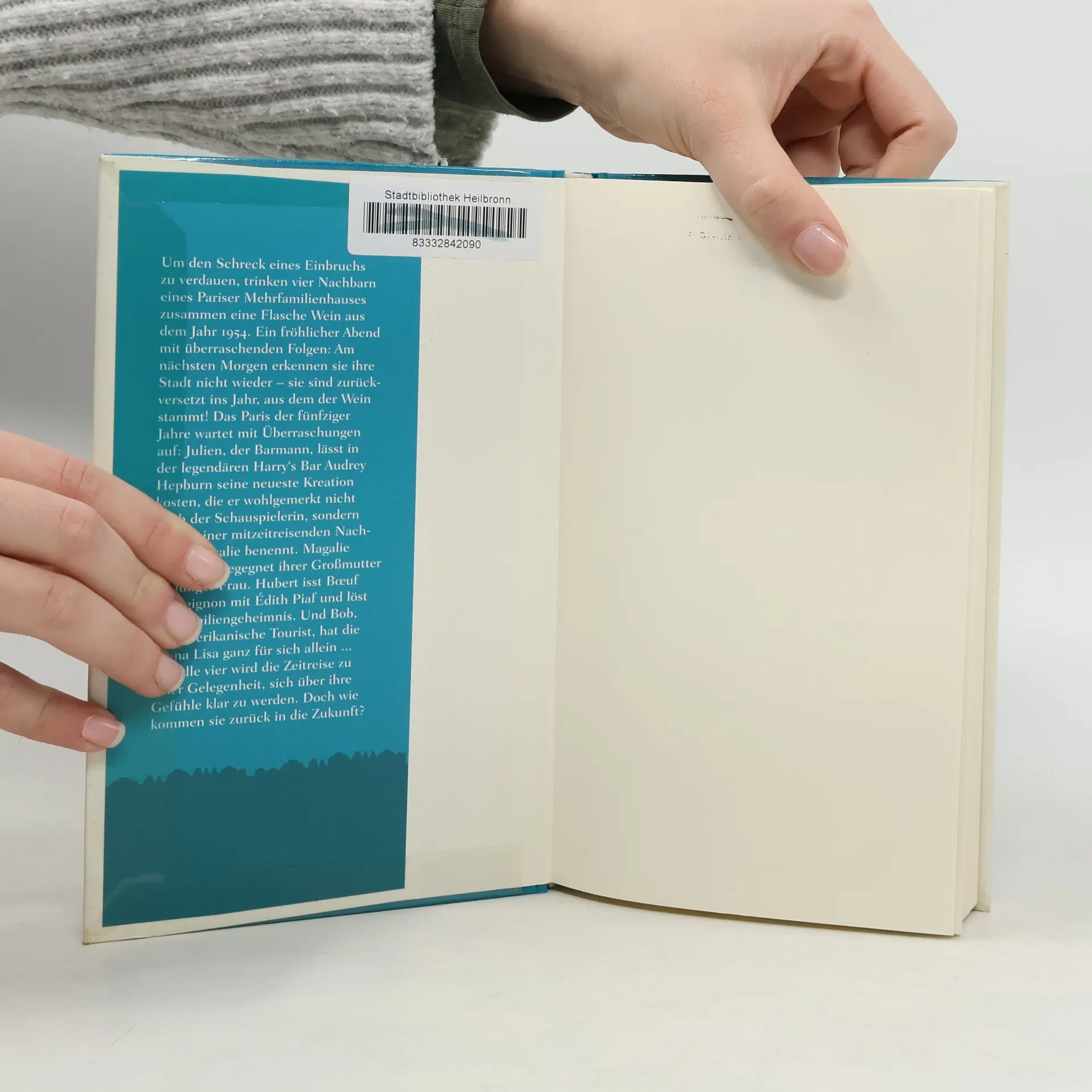 Um den Schreck eines Einbruchs zu verdauen, trinken vier Nachbarn eines Pariser Mehrfamilienhauses zusammen eine Flasche Wein aus dem Jahr 1954. Ein fröhlicher Abend mit überraschenden Folgen: Am nächsten Morgen erkennen sie ihre Stadt nicht wieder – sie sind zurückversetzt ins Jahr, aus dem der Wein stammt! Das Paris der fünfziger Jahre wartet mit Überraschungen auf: Julien, der Barmann, lässt in der legendären Harry's Bar Audrey Hepburn seine neueste Kreation kosten, die er wohlgemerkt nicht nach der Schauspielerin, sondern nach seiner mitzeitreisenden Nachbarin Magalie benennt. Magalie wiederum wird für Juliens Ehefrau gehalten und begegnet ihrer Großmutter als junger Frau. Hubert isst Boeuf Bourgignon mit Édith Piaf und löst ein Familiengeheimnis. Und Bob, der amerikanische Tourist, hat die Mona Lisa ganz für sich allein … Für alle vier wird die Zeitreise zu einer Gelegenheit, sich über ihre Gefühle klar zu werden. Doch wie kommen sie zurück in die Zukunft?