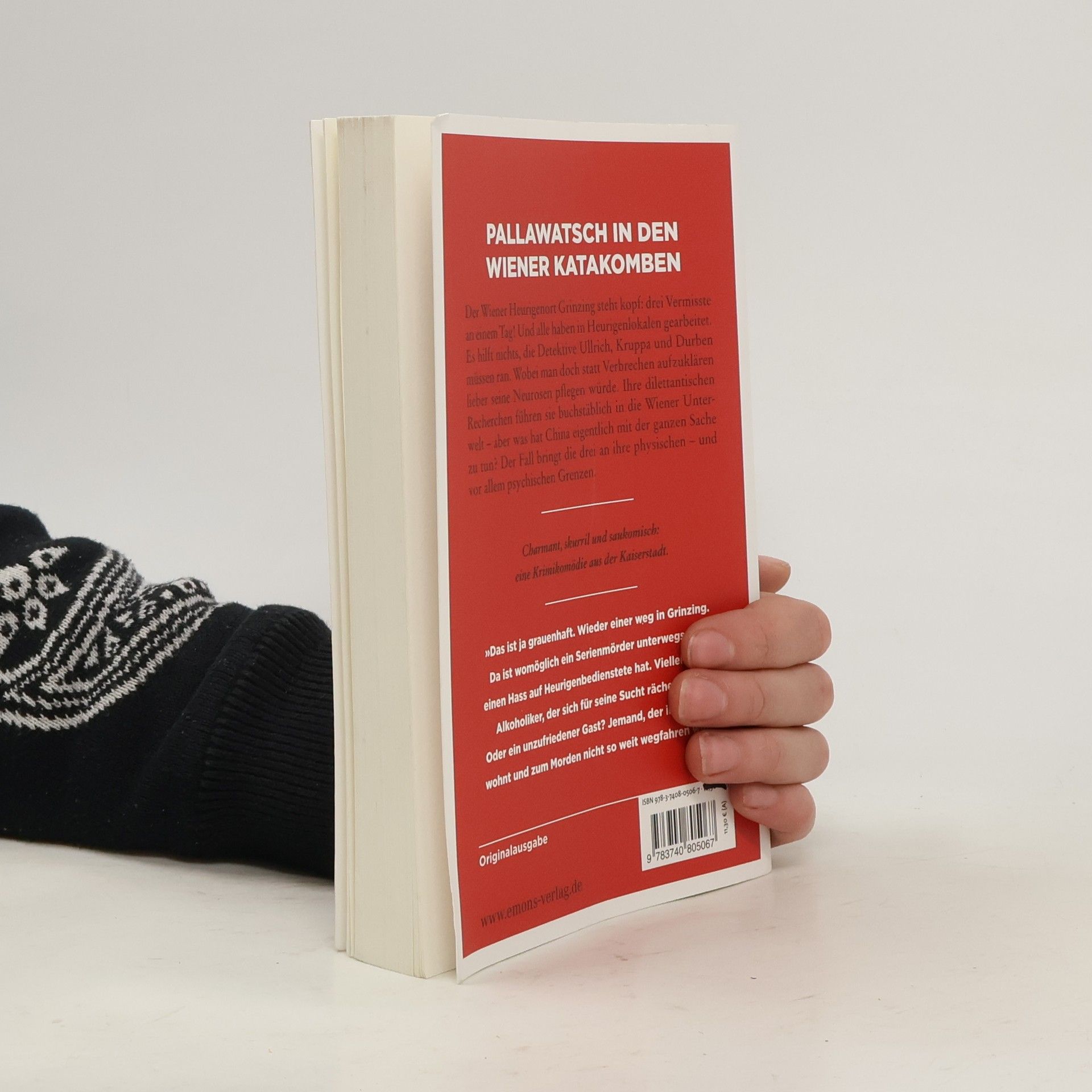 Pallawatsch in den Wiener Katakomben Der Wiener Heurigenort Grinzing steht kopf: drei Vermisste an einem Tag! Und alle haben im selben Heurigen gearbeitet. Es hilft nichts, die Detektive Ullrich, Kruppa und Durben müssen ran. Wobei man doch statt Verbrechen aufzuklären lieber seine Neurosen pflegen würde. Die dilettantischen Recherchen führen sie buchstäblich in die Wiener Unterwelt – aber was hat China eigentlich mit der ganzen Sache zu tun? Der Fall bringt die drei an ihre physischen – und vor allem psychischen Grenzen.