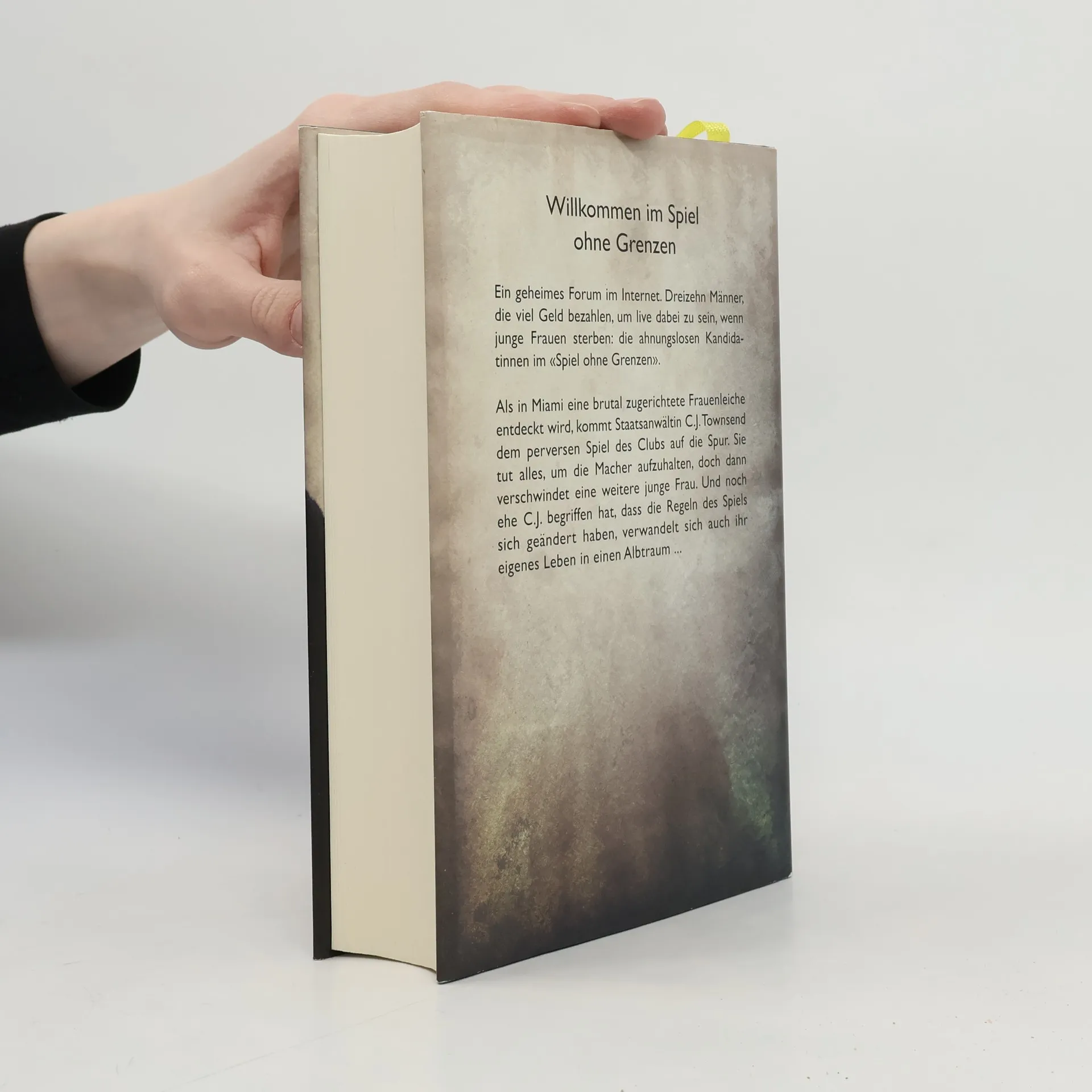 Willkommen im Spiel ohne Grenzen Ein geheimes Forum im Internet. Dreizehn Männer, die viel Geld bezahlen, um live dabei zu sein, wenn junge Frauen sterben: die ahnungslosen Kandidatinnen im «Spiel ohne Grenzen». Als in Miami eine brutal zugerichtete Frauenleiche entdeckt wird, kommt Staatsanwältin C. J. Townsend dem perversen Spiel des Clubs auf die Spur. Sie tut alles, um die Macher aufzuhalten, doch dann verschwindet eine weitere junge Frau. Und noch ehe C. J. begriffen hat, dass die Regeln des Spiels sich geändert haben, verwandelt sich auch ihr eigenes Leben in einen Albtraum ...