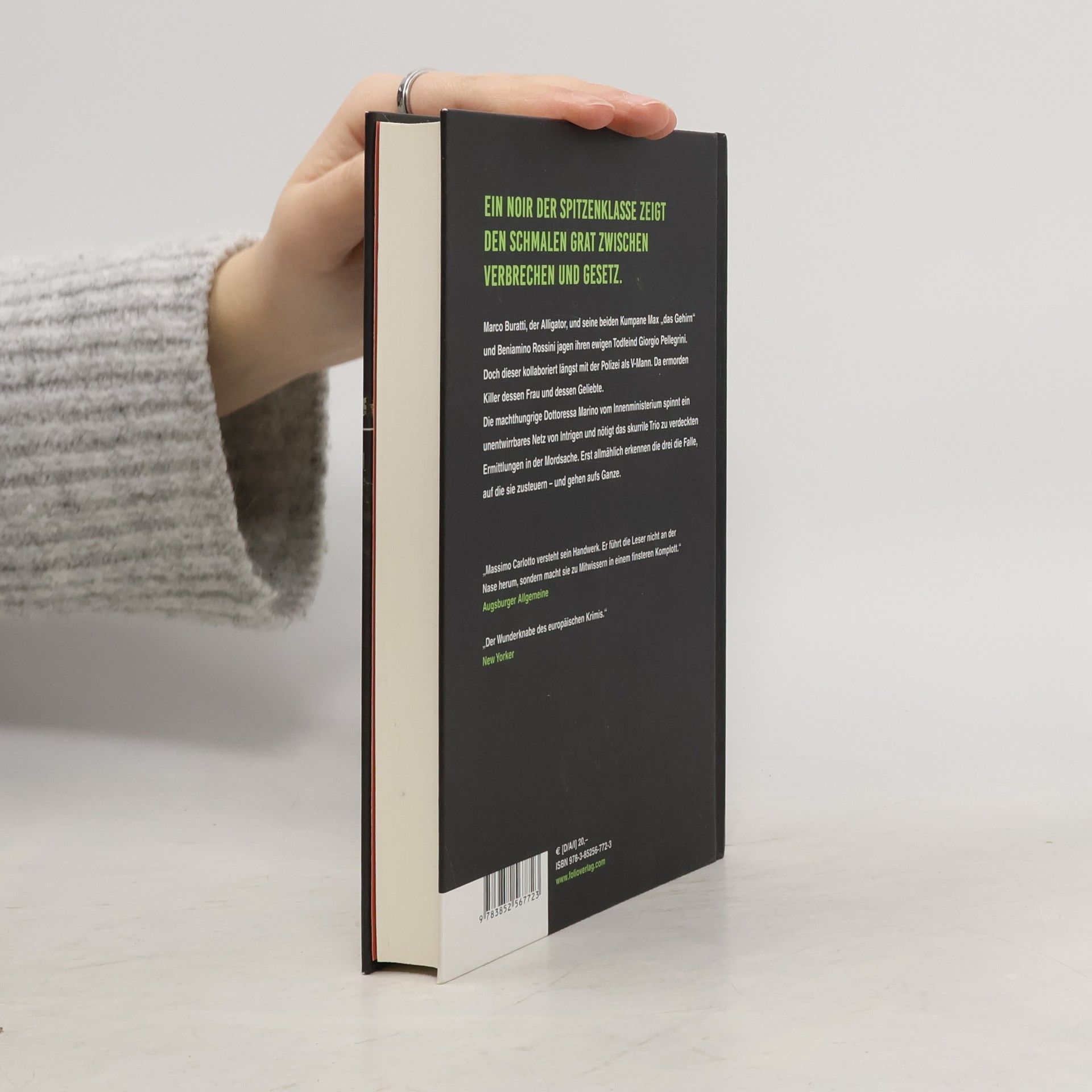 Ein Noir der Spitzenklasse zeigt den schmalen Grat zwischen Verbrechen und Gesetz. Marco Buratti, der Alligator, und seine beiden Kumpane Max „das Gehirn“ und Rossini, genannt der alte Gauner, jagen ihren ewigen Todfeind Giorgio Pellegrini. Doch dieser kollaboriert längst mit der Polizei als V-Mann. Da ermorden Killer dessen Frau und dessen Geliebte. Die machthungrige Dottoressa Marino vom Innenministerium spinnt ein unentwirrbares Netz von Intrigen und nötigt das skurrile Trio zu verdeckten Ermittlungen in der Mordsache. Erst allmählich erkennen die drei die Falle, auf die sie zusteuern – und gehen aufs Ganze.