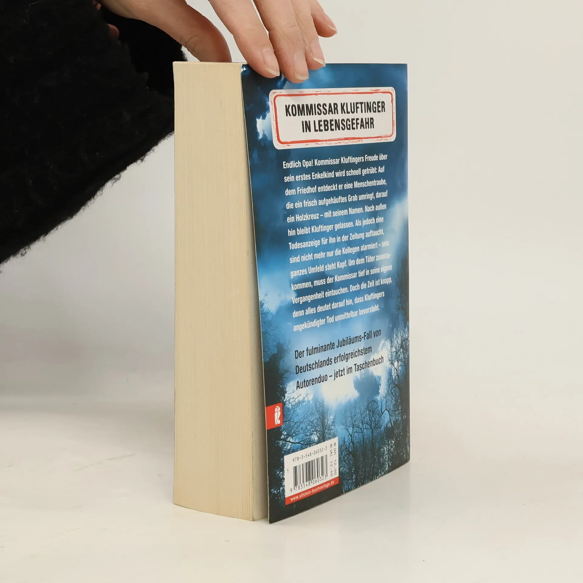 Kommissar Kluftinger in Lebensgefahr Endlich Opa! Kommissar Kluftingers Freude über sein erstes Enkelkind wird schnell getrübt: Auf dem Friedhof entdeckt er eine Menschentraube, die ein frisch aufgehäuftes Grab umringt, darauf ein Holzkreuz – mit seinem Namen. Nach außen hin bleibt Kluftinger gelassen. Als jedoch eine Todesanzeige für ihn in der Zeitung auftaucht, sind nicht mehr nur die Kollegen alarmiert – sein ganzes Umfeld steht Kopf. Um dem Täter zuvorzukommen, muss der Kommissar tief in seine eigene Vergangenheit eintauchen. Doch die Zeit ist knapp, denn alles deutet darauf hin, dass Kluftingers angekündigter Tod unmittelbar bevorsteht. Deutschlands erfolgreichstes Autorenduo ist zurück - mit dem großen Jubiläums-Bestseller, in dem endlich das Geheimnis um Kluftingers Vornamen gelüftet wird!