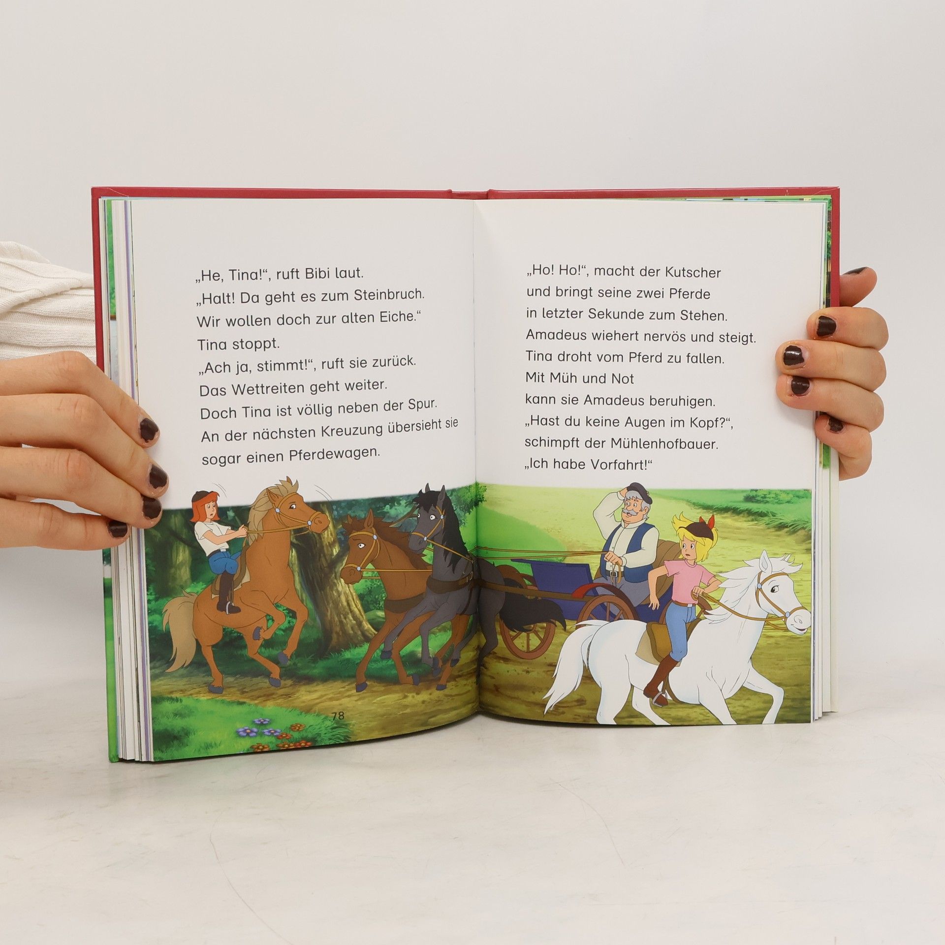 Diese vier spannenden Pferde-Geschichten begeistern Fans von Bibi und Tina: Bibi und Tina sind allein mit den Ferienkindern und bald ist das Chaos perfekt. Spukt es auf dem Martinshof? Warum ist Tina schlecht gelaunt und Mikosch plötzlich verschwunden. Optimal abgestimmt auf das erste Lesevermögen von Kindern in der 1. und 2. Klasse durch ein ausgewogenes Verhältnis von Textmenge und Illustration, angepasster Schriftart, Schriftgröße und Zeilenlänge Mit Hufeisen-Quiz zur spielerischen Überprüfung des Textverständnisses Die perfekte Kombination aus kompetenter Lesevermittlung und spannenden Geschichten rund um Pferde, Freundschaft und Abenteuer!