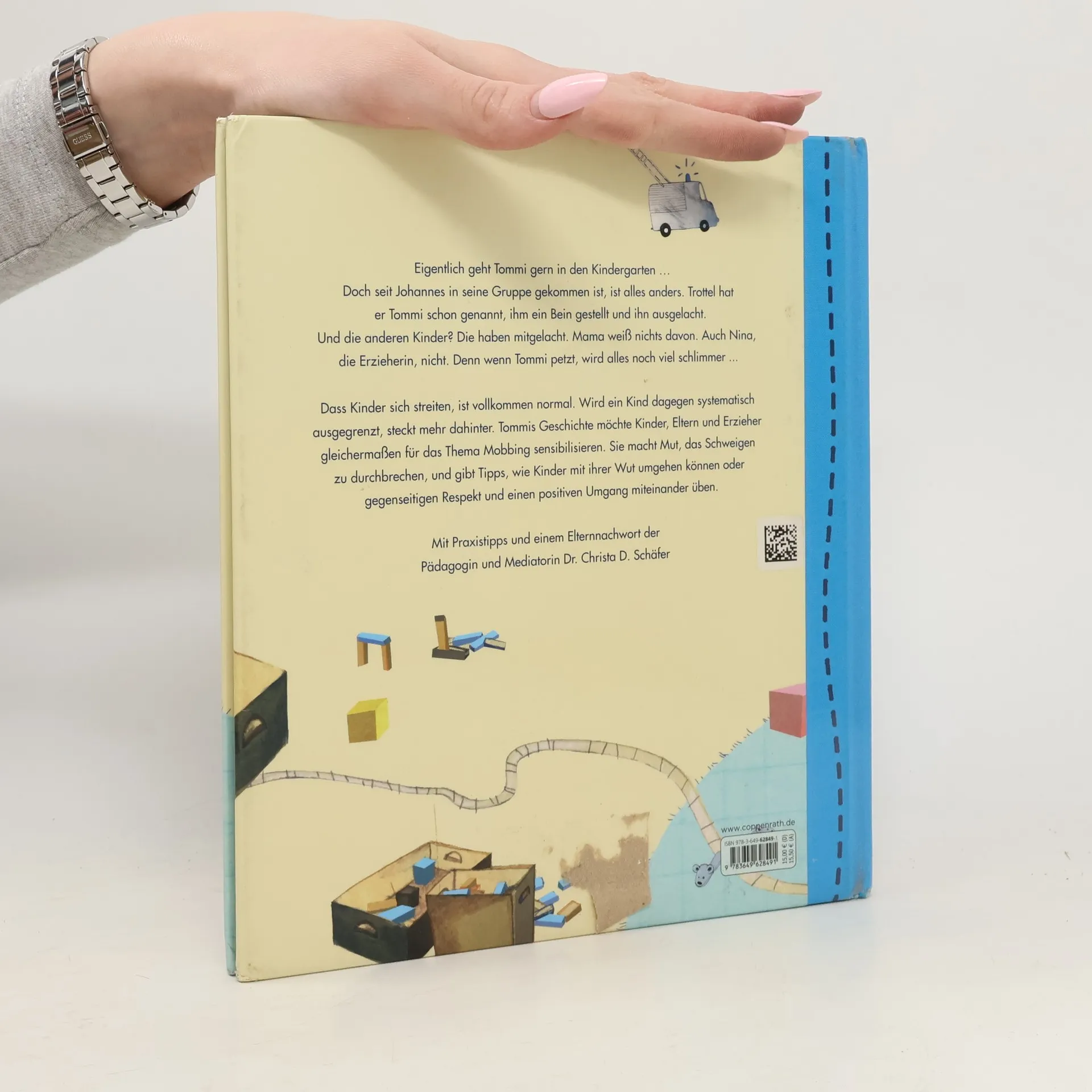 Seit Johannes in seine Gruppe gekommen ist, mag Tommi nicht mehr in den Kindergarten gehen. Trottel hat Johannes ihn schon genannt, ihm ein Bein gestellt und ihn ausgelacht. Und die anderen Kinder? Die haben mitgelacht. Mama weiß nichts davon. Auch Nina, die Erzieherin, nicht. Denn wenn Tommi petzt, wird alles noch viel schlimmer ... Dass Kinder sich streiten, ist vollkommen normal. Wird ein Kind aber systematisch ausgegrenzt, spricht man von Mobbing. Tommis Geschichte möchte Kinder, Eltern und Erzieher gleichermaßen für dieses Thema sensibilisieren. Sie macht Mut, das Schweigen zu durchbrechen, und gibt Tipps, wie Kinder mit ihrer Wut umgehen können oder gegenseitigen Respekt und einen positiven Umgang miteinander üben. Mit praktischen Tipps für die ganze Familie und einem Elternnachwort der Pädagogin und Mediatorin Dr. Christa D. Schäfer
