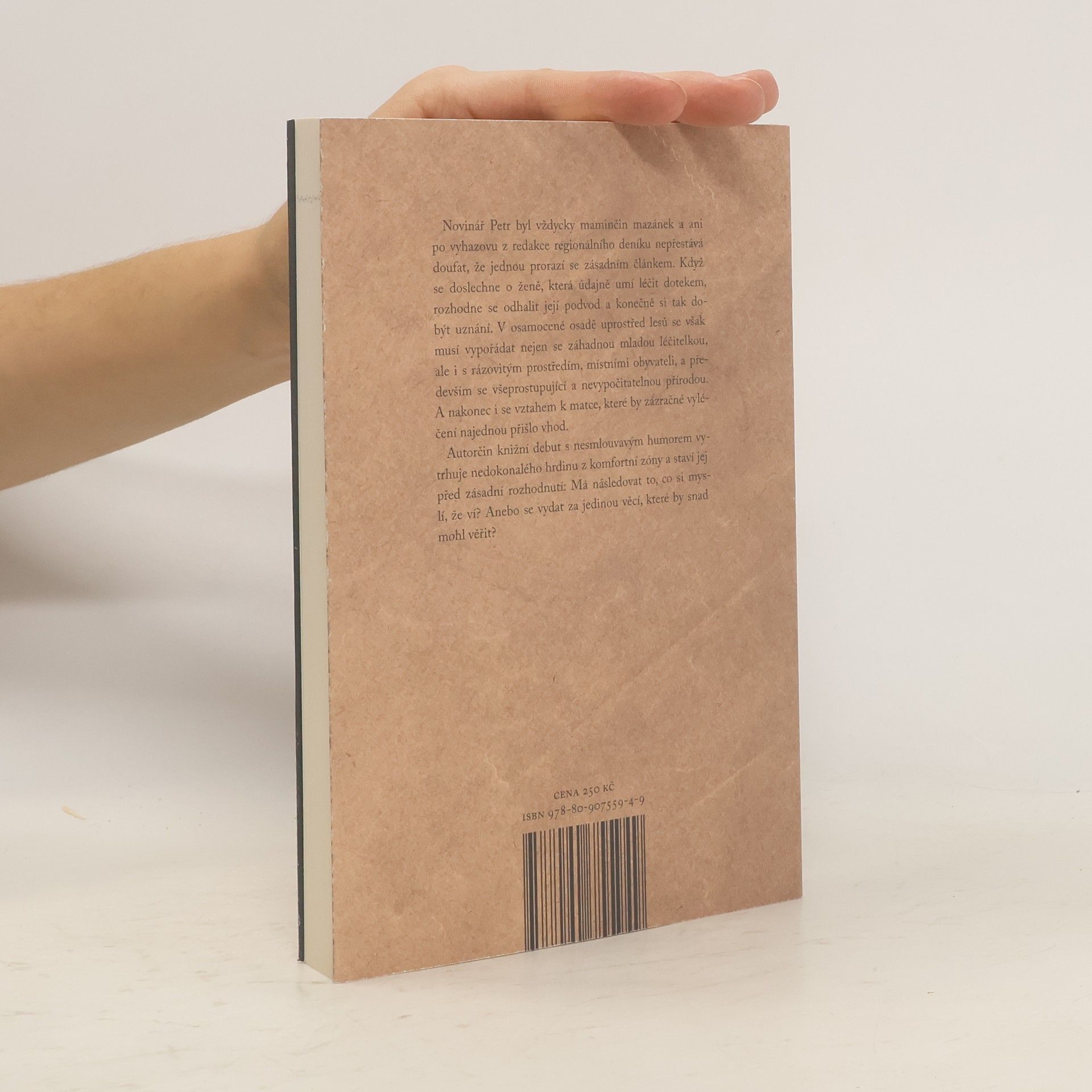 Novinář Petr byl vždycky maminčin mazánek a ani po vyhazovu z redakce regionálního deníku nepřestává doufat, že jednou prorazí se zásadním článkem. Když se doslechne o ženě, která údajně umí léčit dotekem, rozhodne se odhalit její podvod a konečně si tak dobýt uznání. V osamocené osadě uprostřed lesů se však musí vypořádat nejen se záhadnou mladou léčitelkou, ale i s rázovitým prostředím, místními obyvateli, a především se všeprostupující a nevypočitatelnou přírodou. A nakonec i se vztahem k matce, které by zázračné vyléčení najednou přišlo vhod. Autorčin knižní debut s nesmlouvavým humorem vytrhuje nedokonalého hrdinu z komfortní zóny. Nechává ho čelit nečekané otázce – má následovat to, co si myslí, že ví, nebo jedinou věc, které by snad mohl věřit?