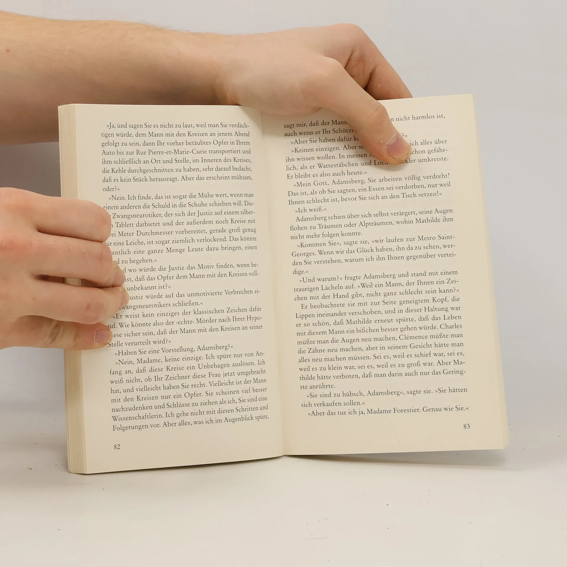 Mörderischer Spuk im nächtlichen Paris. Auf Pariser Bürgersteigen erscheinen über Nacht mysteriöse blaue Kreidekreise, darin ein ganz banaler Gegenstand. Keiner hat den Zeichner je gesehen, niemand nimmt die Sache ernst – niemand außer dem neuen Kommissar im 5. Arrondissement, Jean-Baptiste Adamsberg. Und eines Nachts geschieht, was er befürchtet hat: Es liegt ein toter Mensch im Kreis. „Wer Donna Leon liebt, wird Fred Vargas vergöttern.“ P. S., Zürich. „Es ist unmöglich, von Vargas nicht gefesselt zu sein.“ DIE ZEIT.