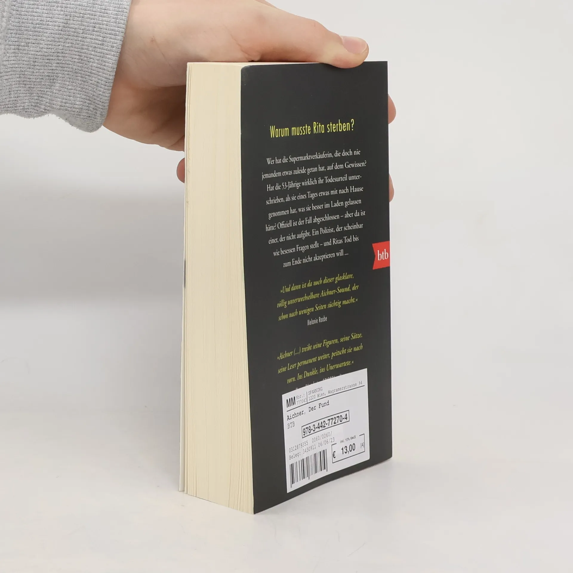 Der Bestseller erstmals im Taschenbuch Wer hat die Supermarktverkäuferin, die doch nie jemand etwas zuleide getan hat, auf dem Gewissen? Hat die 53-jährige wirklich ihr Todesurteil unterschrieben, als sie eines Tages etwas mit nach Hause genommen hat, was sie besser im Laden gelassen hätte? Offiziell ist der Fall abgeschlossen – aber da ist einer, der nicht aufgibt. Ein Polizist, der scheinbar wie besessen Fragen stellt – und Ritas Tod bis zum Ende nicht akzeptieren will …