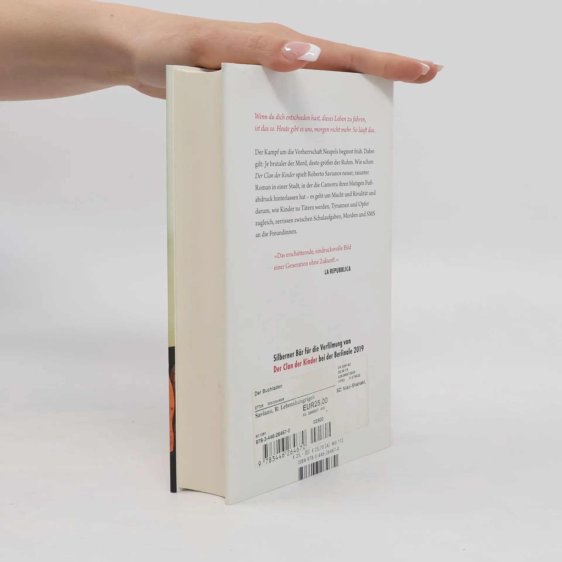 „Das erschütternde, eindrucksvolle Bild einer Generation ohne Zukunft.“ La Repubblica Sie sind gierig, sie sind jung, sie sind skrupellos – und sie haben nichts zu verlieren. Für Maraja, Tucano, Drane und Dragò beginnt der Kampf um die Vorherrschaft in Neapel früh. Maraja ist noch keine achtzehn, als er nach dem Mord an seinem Bruder Blutrache schwört. Doch eigentlich will der Clan vor allem eins: Die nächste Million mit Kokain machen. Als es zu Lieferschwierigkeiten kommt, muss Maraja Allianzen mit den Rivalen schmieden – und unterschätzt die Gefahr aus den eigenen Reihen. Bis eines Nachts an seiner Stelle irrtümlich ein junger Mann ermordet wird. Eine rasante Erzählung über die Kinder der Camorra.