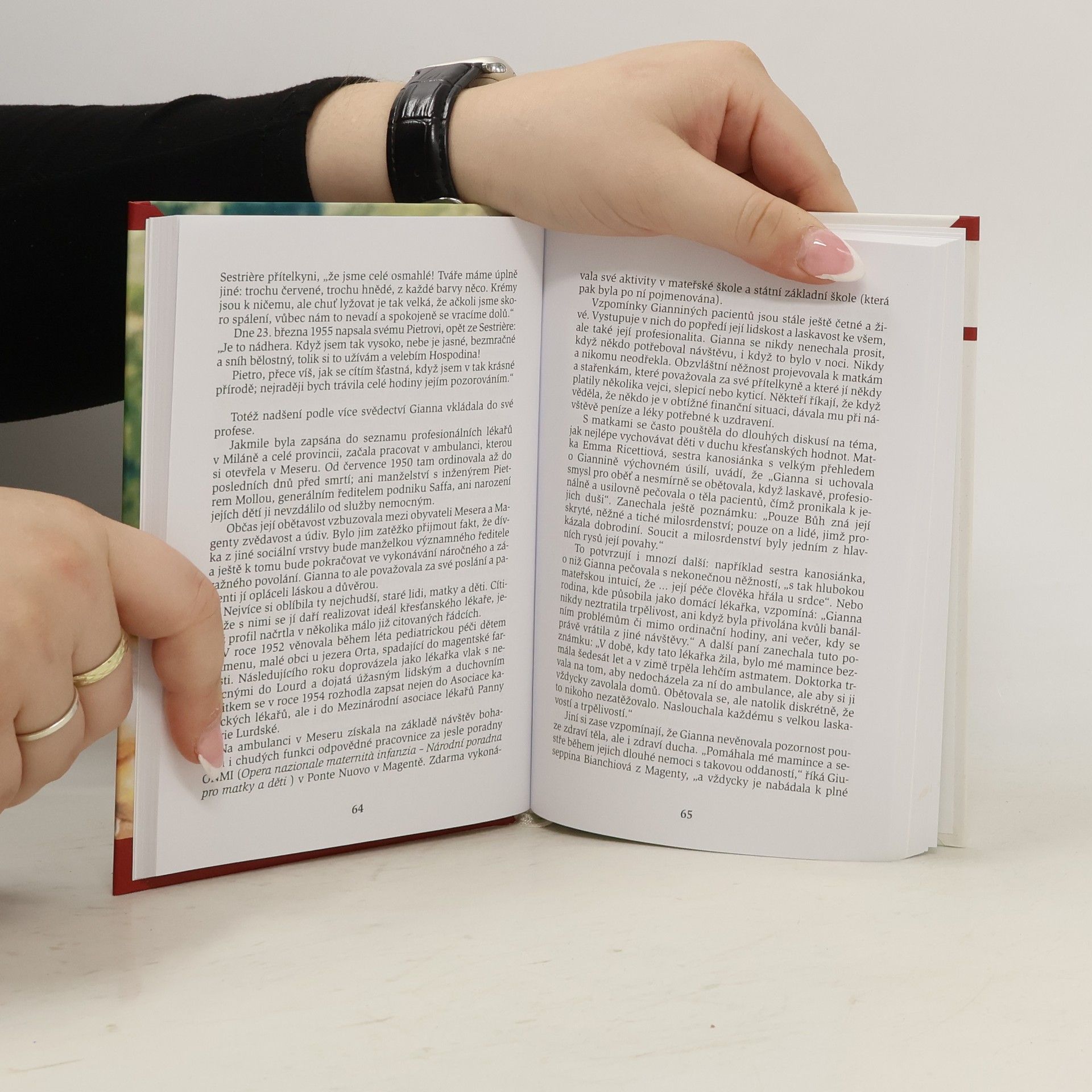 Když Jan Pavel II. v květnu 2004 svatořečil Giannu Berettovou Mollovou (1922–1962), označil ji za „prostou, ale o to výmluvnější poselkyní Boží lásky“. Její život byl naplněn běžnými radostmi a starostmi mladé ženy. Jako desáté z třinácti dětí vyrůstala nedaleko Milána a rozhodla se stát lékařkou. Po dokončení studií se v roce 1952 specializovala na dětské lékařství a aktivně se zapojila do Katolické akce. V roce 1955 se provdala za Petra Mollu a během čtyř let se jim narodily tři děti. I při plnění mateřských povinností si našla čas na své záliby, jako je malování a hudba. V září 1961, během druhého měsíce posledního těhotenství, se dozvěděla o rostoucím fibromu. Musela se rozhodnout mezi záchranou vlastního života a životem nenarozeného dítěte. Jako lékařka si byla vědoma rizik a zvolila nejriskantnější možnost: odstranění fibromu bez ukončení těhotenství, což znamenalo značné nebezpečí. Po porodu však nebylo možné její život zachránit. Publikace Život za život ukazuje Giannu jako temperamentní a radostnou ženu a vyvolává zamyšlení nad hodnotou mateřství a mezními situacemi v životě.