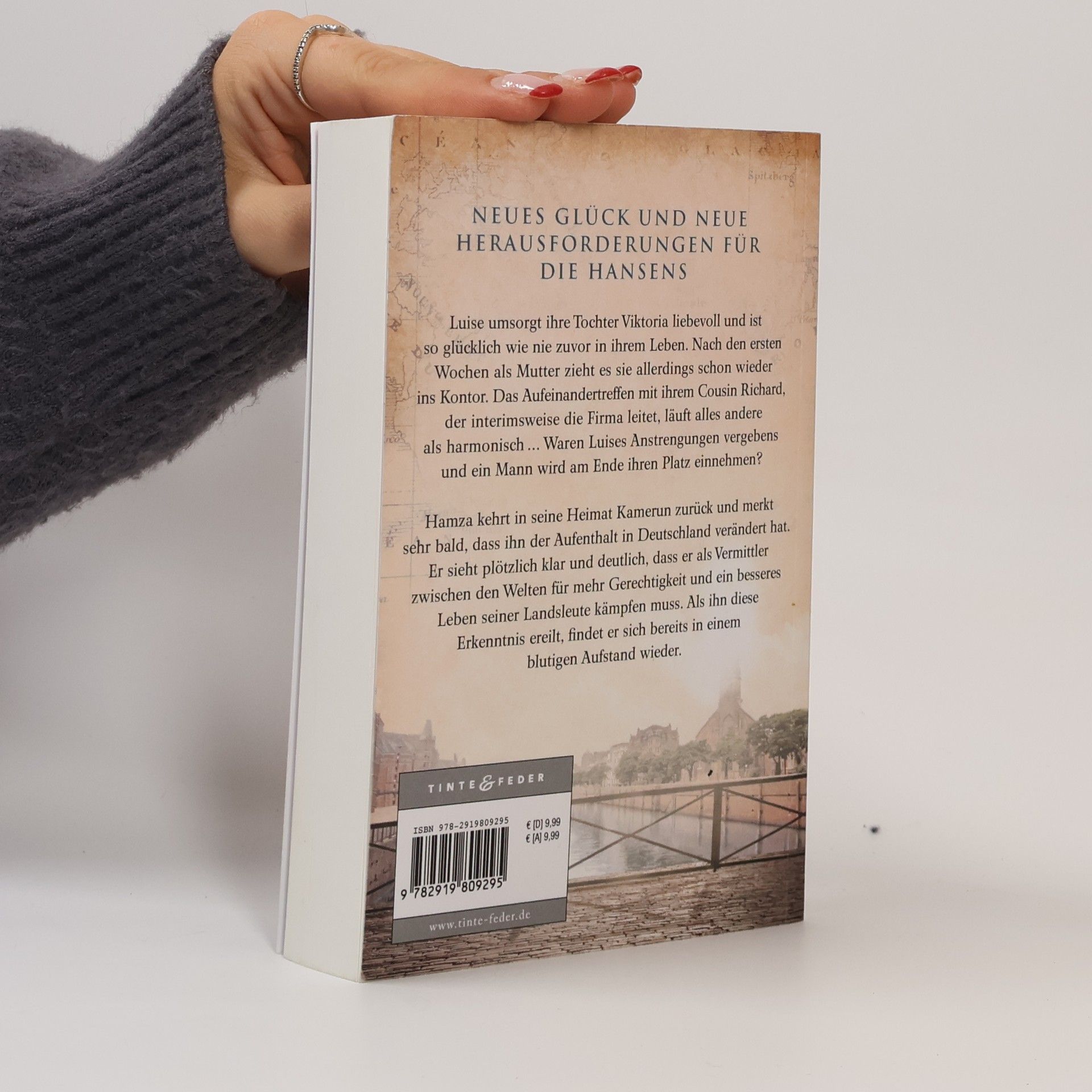 Neues Glück und neue Herausforderungen für die Hansens: die Fortsetzung der facettenreichen Familiensaga von Bestsellerautorin Ellin Carsta. Luise umsorgt ihre Tochter Viktoria liebevoll und ist so glücklich wie nie zuvor in ihrem Leben. Nach den ersten Wochen als Mutter zieht es sie allerdings schon wieder ins Kontor. Das Aufeinandertreffen mit ihrem Cousin Richard, der interimsweise die Firma leitet, läuft alles andere als harmonisch … Waren Luises Anstrengungen vergebens und ein Mann wird am Ende ihren Platz einnehmen? Hamza kehrt in seine Heimat Kamerun zurück und merkt sehr bald, dass ihn der Aufenthalt in Deutschland verändert hat. Er sieht plötzlich klar und deutlich, dass er als Vermittler zwischen den Welten für mehr Gerechtigkeit und ein besseres Leben seiner Landsleute kämpfen muss. Als ihn diese Erkenntnis ereilt, findet er sich bereits in einem blutigen Aufstand wieder.