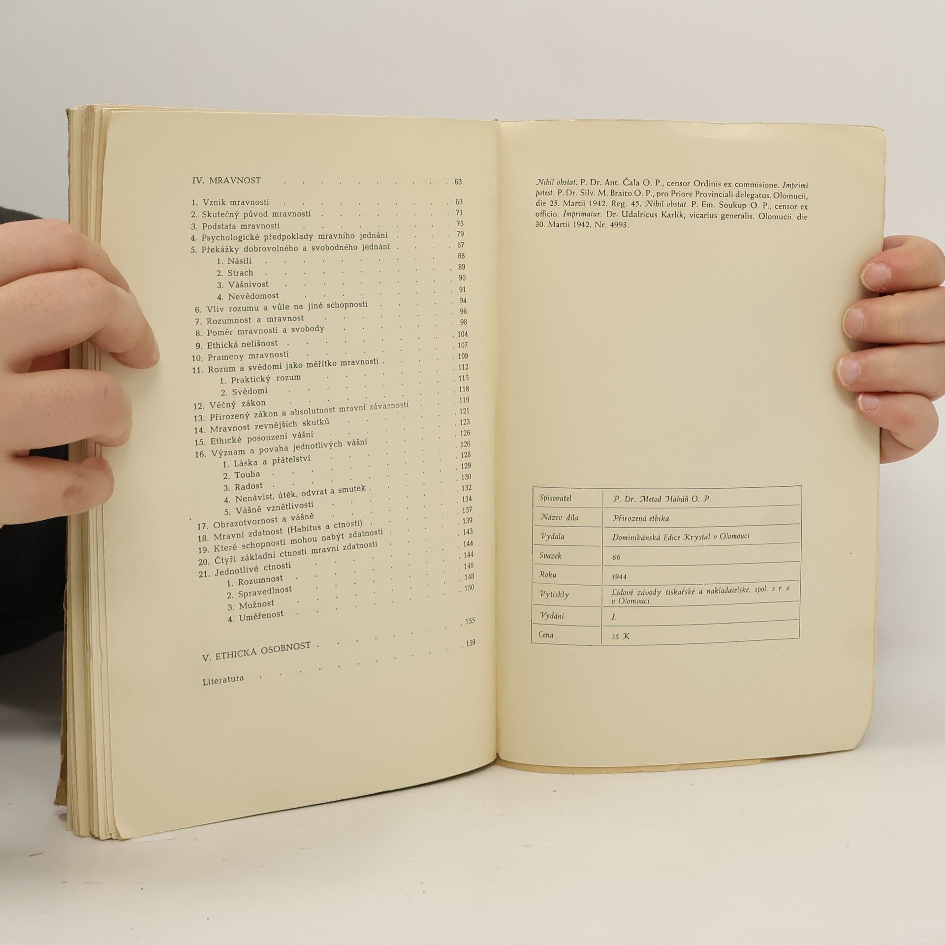Z obsahu: Úvod do ethické vědy, Základní ethické pojmy: dobro, cíl, smysl života, Blaženost a štěstí, Mravnost, Ethická osobnost