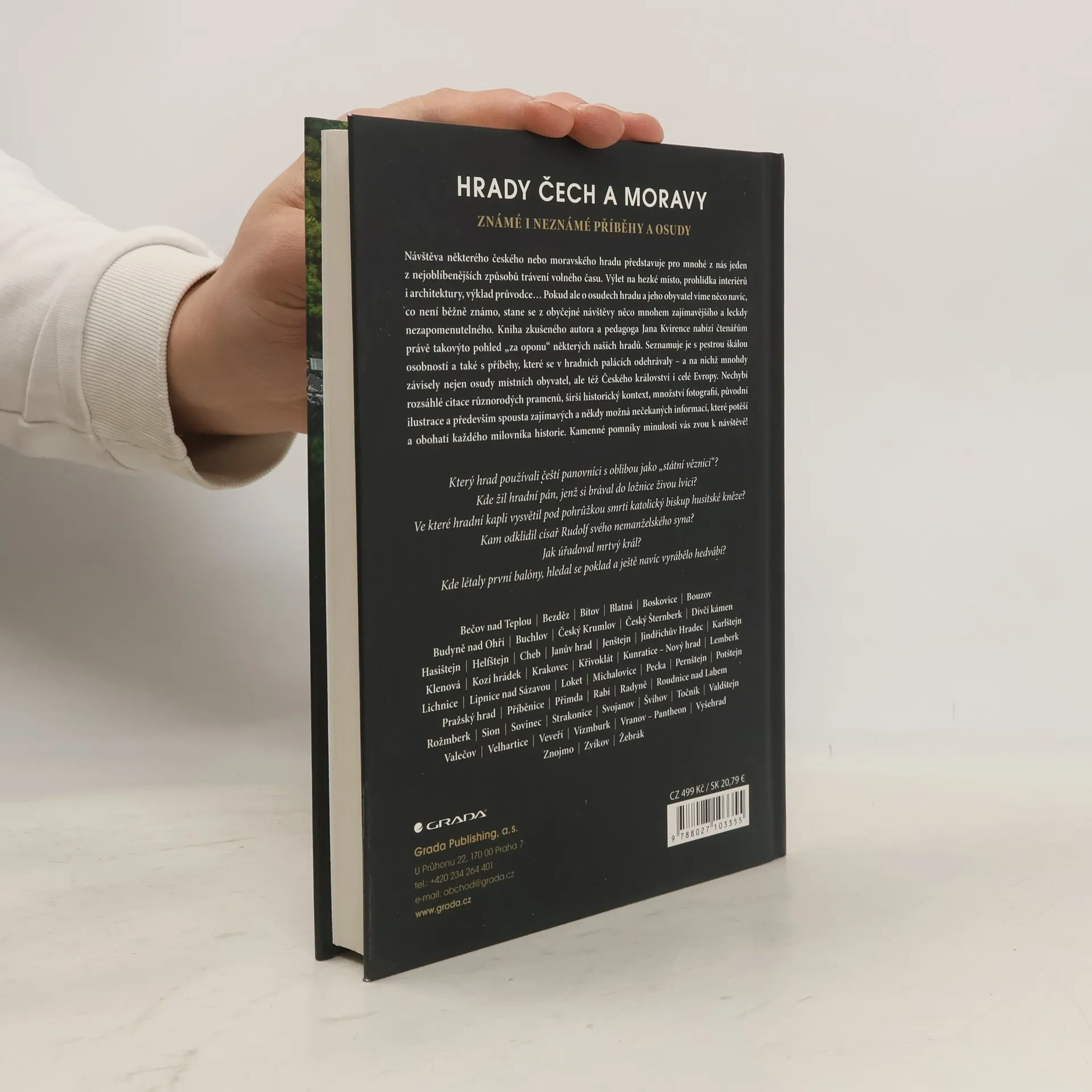 Návštěva některého českého nebo moravského hradu představuje pro mnohé z nás jeden z nejoblíbenějších způsobů trávení volného času. Výlet na hezké místo, prohlídka interiérů i architektury, výklad průvodce… Pokud ale o osudech hradu a jeho obyvatel víme něco navíc, co není běžně známo, stane se z obyčejné návštěvy něco mnohem zajímavějšího a leckdy nezapomenutelného. Kniha zkušeného autora a pedagoga Jana Kvirence nabízí čtenářům právě takovýto pohled „za oponu“ některých našich hradů. Seznamuje je s pestrou škálou osobností a také s příběhy, které se v hradních palácích odehrávaly – a na nichž mnohdy závisely nejen osudy místních obyvatel, ale též Českého království i celé Evropy. Nechybí rozsáhlé citace různorodých pramenů, širší historický kontext, množství fotografií, původní ilustrace a především spousta zajímavých a někdy možná nečekaných informací, které potěší a obohatí každého milovníka historie. Kamenné pomníky minulosti vás zvou k návštěvě!