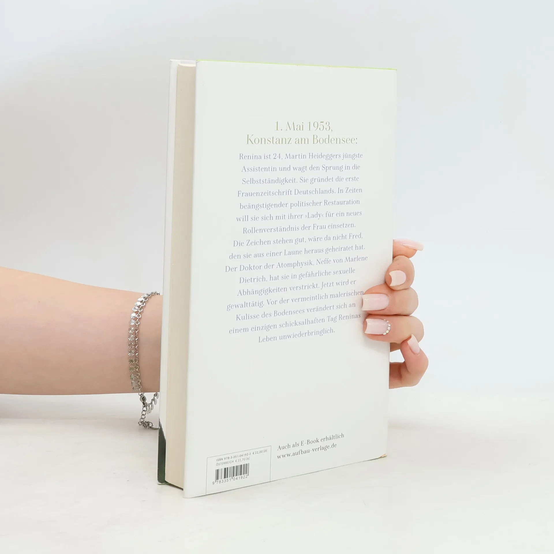 1. Mai 1953, Konstanz am Bodensee: Renina ist vierundzwanzig, Martin Heideggers jüngste Assistentin und wagt den Sprung in die Selbstständigkeit. Sie gründet die erste Frauenzeitschrift Deutschlands. In Zeiten beängstigender politischer Restauration will sie sich mit ihrer »Lady« für ein neues Rollenverständnis der Frau einsetzen. Die Zeichen stehen gut, wäre da nicht Fred, den sie aus einer Laune heraus geheiratet hat. Der Doktor der Atomphysik, Neffe von Marlene Dietrich, hat sie in gefährliche sexuelle Abhängigkeiten verstrickt. Vor der malerischen Kulisse des Bodensees verändert sich an einem einzigen Tag Reninas Leben ...