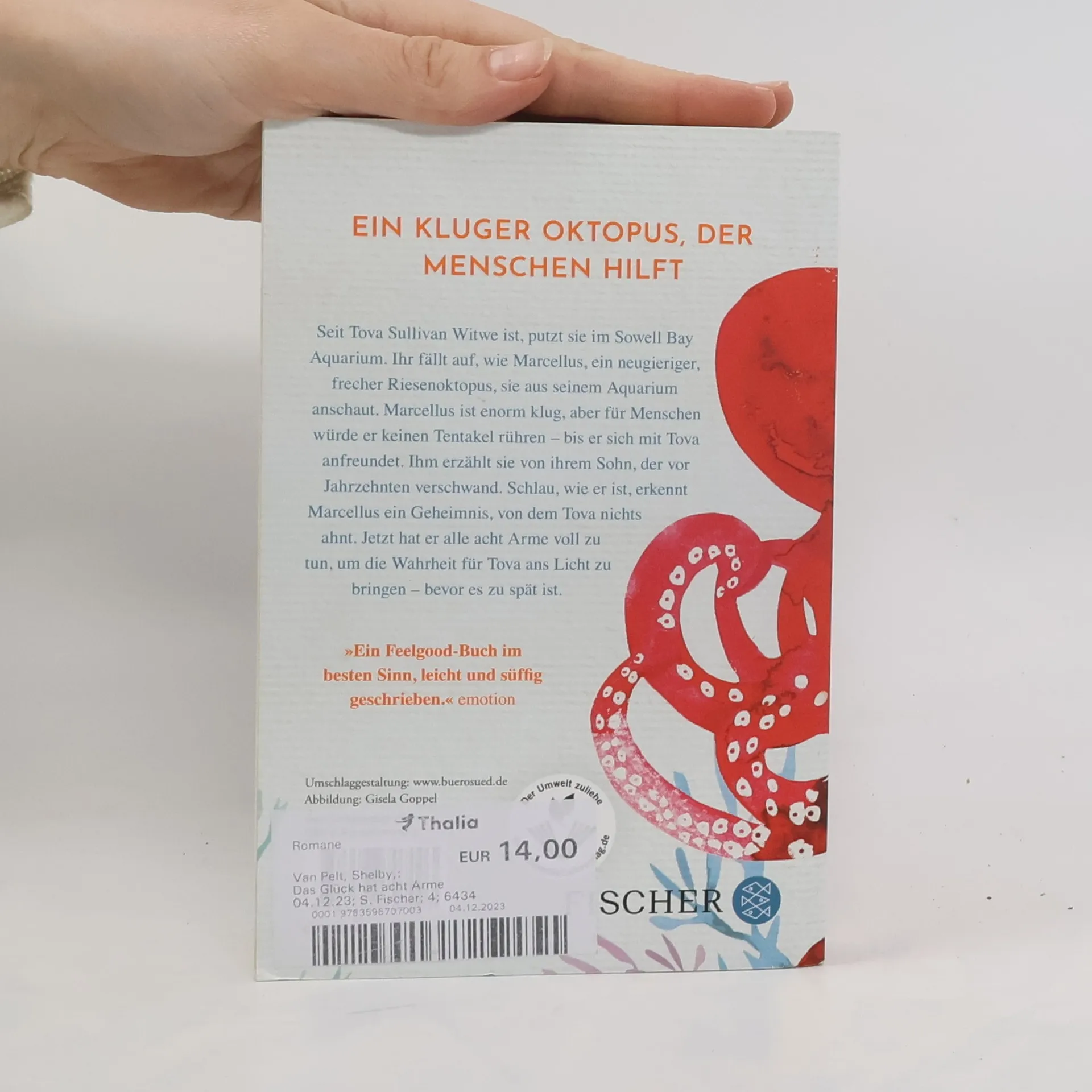 Ein kluger Oktopus, der Menschen hilft: »Ein Feelgood-Buch im besten Sinn, leicht und süffig geschrieben.« emotion. Seit über einem Jahr auf der New-York-Times-Bestsellerliste. Seit Tova Sullivan Witwe ist, putzt sie im Sowell Bay Aquarium. Ihr fällt auf, wie Marcellus, ein neugieriger, frecher Riesenoktopus, sie aus seinem Aquarium anschaut. Marcellus ist enorm klug, aber für Menschen würde er keinen Tentakel rühren – bis er sich mit Tova anfreundet. Ihm erzählt sie von ihrem Sohn, der vor Jahrzehnten verschwand. Schlau, wie er ist, erkennt Marcellus ein Geheimnis, von dem Tova nichts ahnt. Jetzt hat er alle acht Arme voll zu tun, um die Wahrheit für Tova ans Licht zu bringen – bevor es zu spät ist. Ein wunderbar heiterer Roman über die unwahrscheinliche Freundschaft zu einem Oktopus, der Fremde zu einer Familie zusammenführt. Der große New-York-Times-Bestseller mit mehr als einer Million verkauften Exemplaren. »Lesenswerter Roman, der von der ersten bis zur letzten Seite gute Stimmung verbreitet.« Münchner Merkur