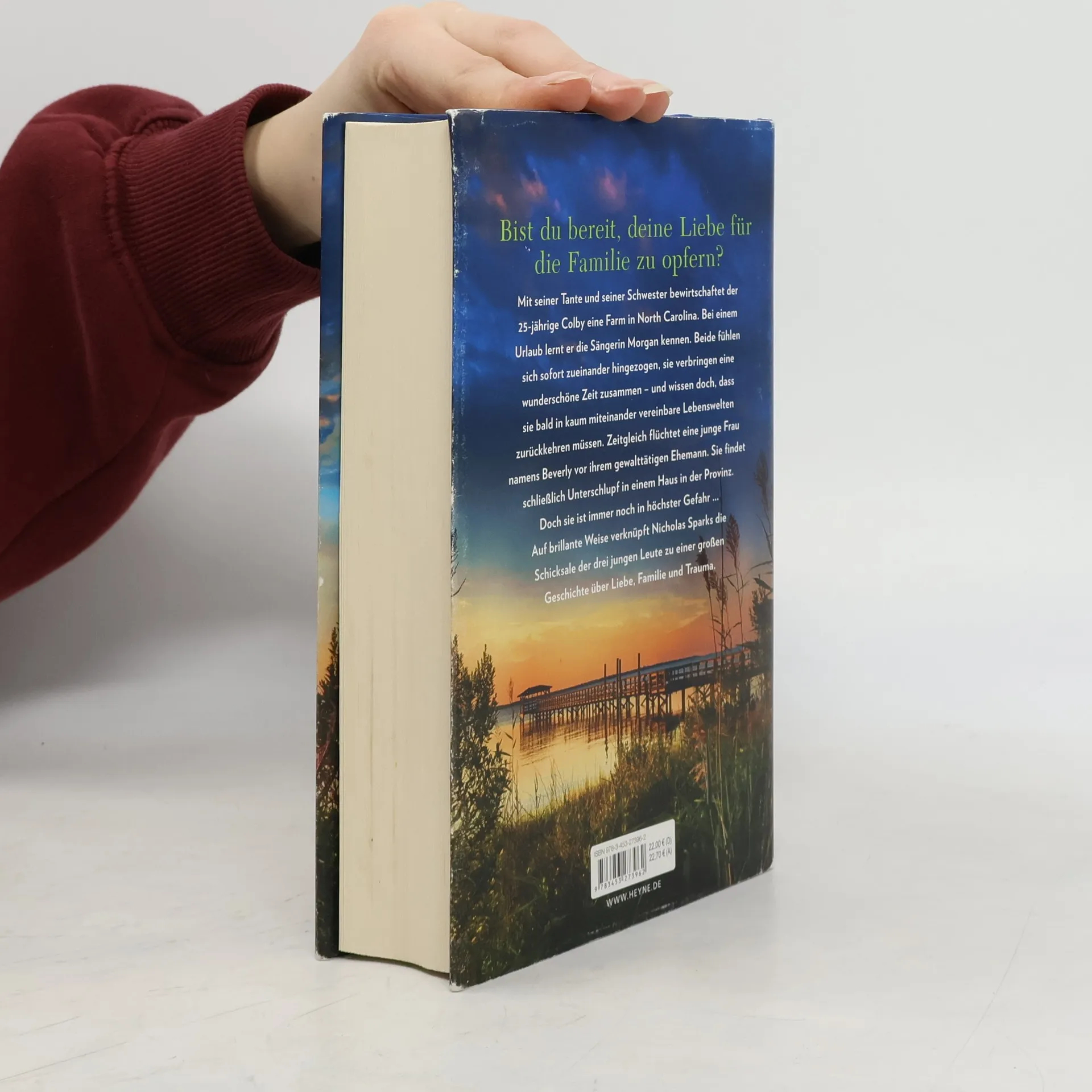 Mit seiner Tante und seiner Schwester bewirtschaftet der 25-jährige Colby eine Farm in North Carolina. Bei einem Urlaub lernt er die Sängerin Morgan kennen. Beide fühlen sich sofort zueinander hingezogen, sie verbringen eine wunderschöne Zeit zusammen – und wissen doch, dass sie bald in kaum miteinander vereinbare Lebenswelten zurückkehren müssen. Zeitgleich flüchtet eine junge Frau namens Beverly vor ihrem gewalttätigen Ehemann. Gemeinsam mit ihrem kleinen Sohn reist sie quer durch Amerika, in ständiger Angst, verfolgt zu werden. Schließlich findet sie Unterschlupf in einem heruntergekommenen Haus in der Provinz. Doch sie ist immer noch in höchster Gefahr … Auf brillante Weise verknüpft Nicholas Sparks die Schicksale der drei jungen Leute zu einer großen Geschichte über Familie, Trauma und Liebe.