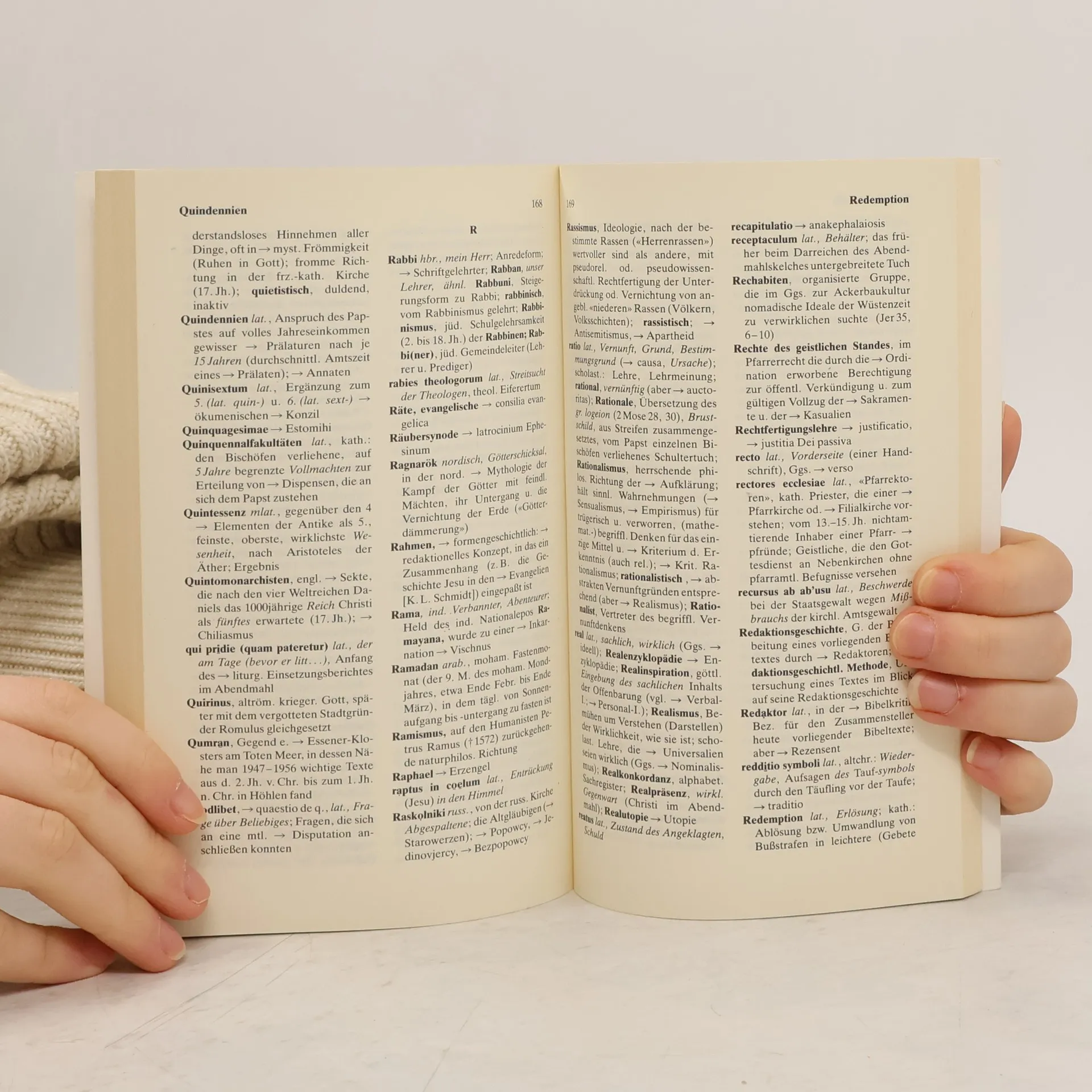 German Bei jedem Stichwort werden, soweit erforderlich, Betonung und sprachliche Herkunft angegeben. Der romisch-katholische Begriffsschatz ist von einem katholischen Theologen uberpruft worden. Zusatzlich zu seinem lexikalischen Teil enthalt das Buch ein ausfuhrliches Verzeichnis kirchlich-theologischer Abkurzungen und einen Uberblick uber die relevanten Nachschlagewerke. Das Buch berucksichtigt auch Nachbargebiete der Theologie und gibt dazu, ohne unhandlich zu werden, vielseitige Auskunfte. Dieser Band ersetzt Nr. 1480 der Kleinen Vandenhoeck-Reihe (ISBN 3-525-33585-7).