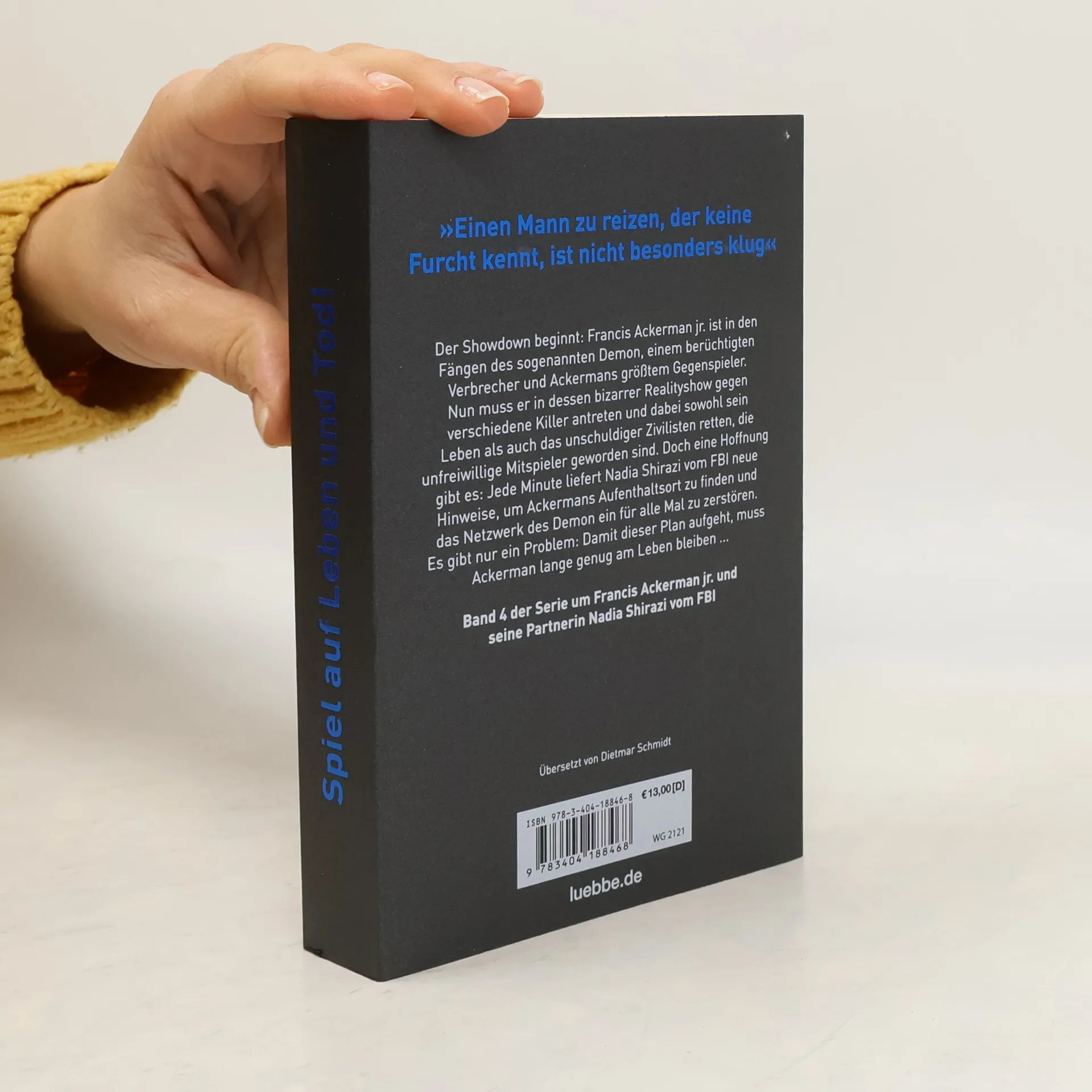 Band 4 der Serie um Francis Ackerman jr. und seine Partnerin Nadia Shirazi vom FBI »Einen Mann zu reizen, der keine Furcht kennt, ist nicht besonders klug« Der Showdown beginnt: Francis Ackerman jr. ist in den Fängen des sogenannten Demon, Ackermans größtem Gegenspieler. Nun muss er in dessen bizarrer Realityshow gegen verschiedene Killer antreten und dabei sowohl sein Leben als auch das unschuldiger Zivilisten retten, die unfreiwillige Mitspieler geworden sind. Doch eine Hoffnung gibt es: Jede Folge liefert Nadia Shirazi vom FBI neue Hinweise, um Ackermans Aufenthaltsort zu finden und das Netzwerk des Demon ein für alle Mal zu zerstören. Es gibt nur ein Problem: Damit dieser Plan aufgeht, muss Ackerman lange genug am Leben bleiben ...