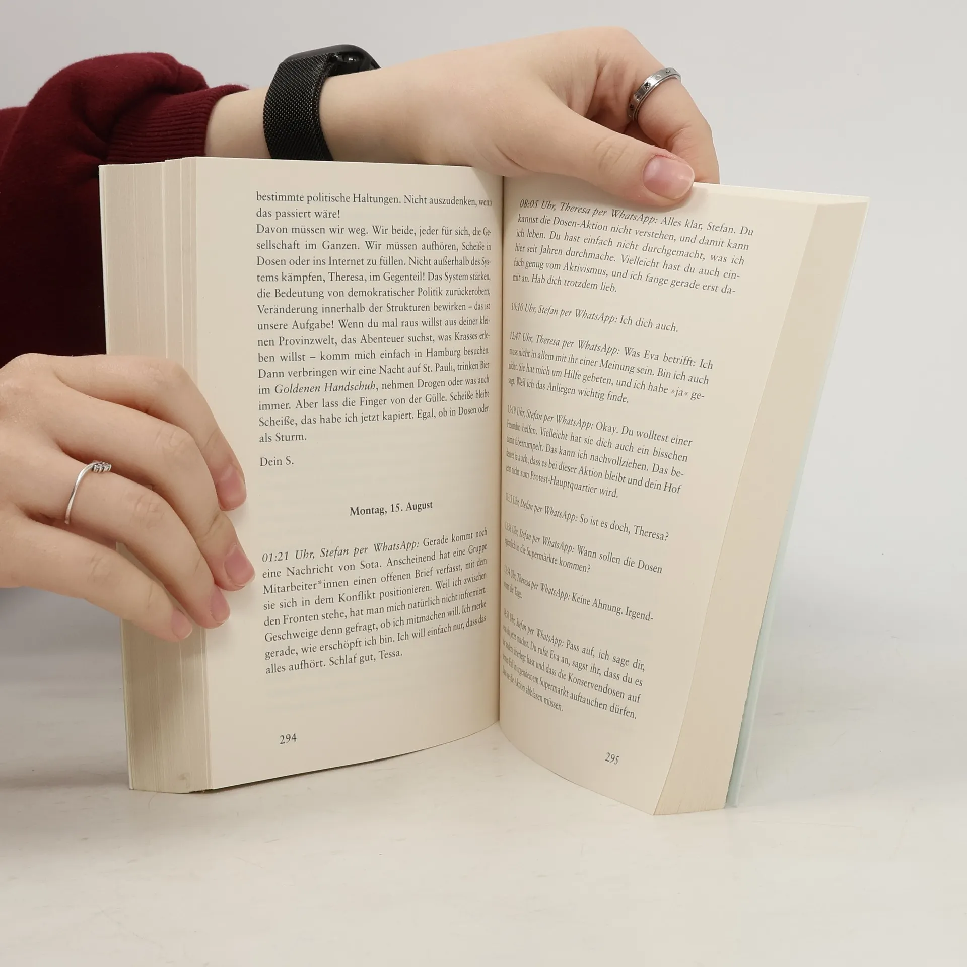 Zwanzig Jahre sind vergangen: Als sich Stefan und Theresa zufällig in Hamburg über den Weg laufen, endet ihr erstes Wiedersehen in einem Desaster. Zu Studienzeiten waren sie wie eine Familie füreinander, heute sind kaum noch Gemeinsamkeiten übrig. Stefan hat Karriere bei Deutschlands größter Wochenzeitung DER BOTE gemacht, Theresa den Bauernhof ihres Vaters in Brandenburg übernommen. Aus den unterschiedlichen Lebensentwürfen sind gegensätzliche Haltungen geworden. Stefan versucht bei seiner Zeitung, durch engagierte journalistische Projekte den Klimawandel zu bekämpfen. Theresa steht mit ihrem Bio-Milchhof vor Herausforderungen, die sie an den Rand ihrer Kraft bringen. Die beiden beschließen, noch einmal von vorne anzufangen, sich per E-Mail und WhatsApp gegenseitig aus ihren Welten zu erzählen. Doch während sie einander näherkommen, geraten sie immer wieder in einen hitzigen Schlagabtausch um polarisierende Fragen wie Klimapolitik, Gendersprache und Rassismusvorwürfe. Ist heute wirklich jeder und jede gezwungen, eine Seite zu wählen? Oder gibt es noch Gemeinsamkeiten zwischen den Welten? Und können Freundschaft und Liebe die Kluft überbrücken?