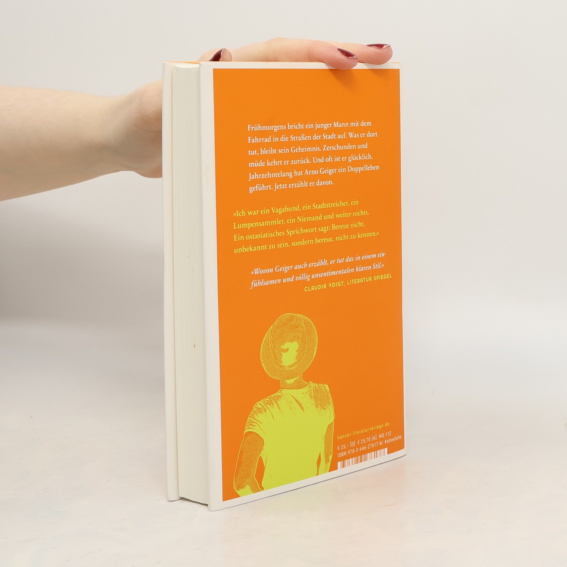 Von Anläufen und Enttäuschungen, vom Finden und Wegwerfen. Und vom Glück des Gelingens. Das neue Buch von Arno Geiger Frühmorgens bricht ein junger Mann mit dem Fahrrad in die Straßen der Stadt auf. Was er dort tut, bleibt sein Geheimnis. Zerschunden und müde kehrt er zurück. Und oft ist er glücklich. Jahrzehntelang hat Arno Geiger ein Doppelleben geführt. Jetzt erzählt er davon, pointiert, auch voller Witz und mit großer Offenheit. Wie er Dinge tat, die andere unterlassen. Wie gewunden, schmerzhaft und überraschend Lebenswege sein können, auch der Weg zur großen Liebe. Wie er als Schriftsteller gegen eine Mauer rannte, bevor der Erfolg kam. Und von der wachsenden Sorge um die Eltern. Ein Buch voller Lebens- und Straßenerfahrung, voller Menschenkenntnis, Liebe und Trauer.