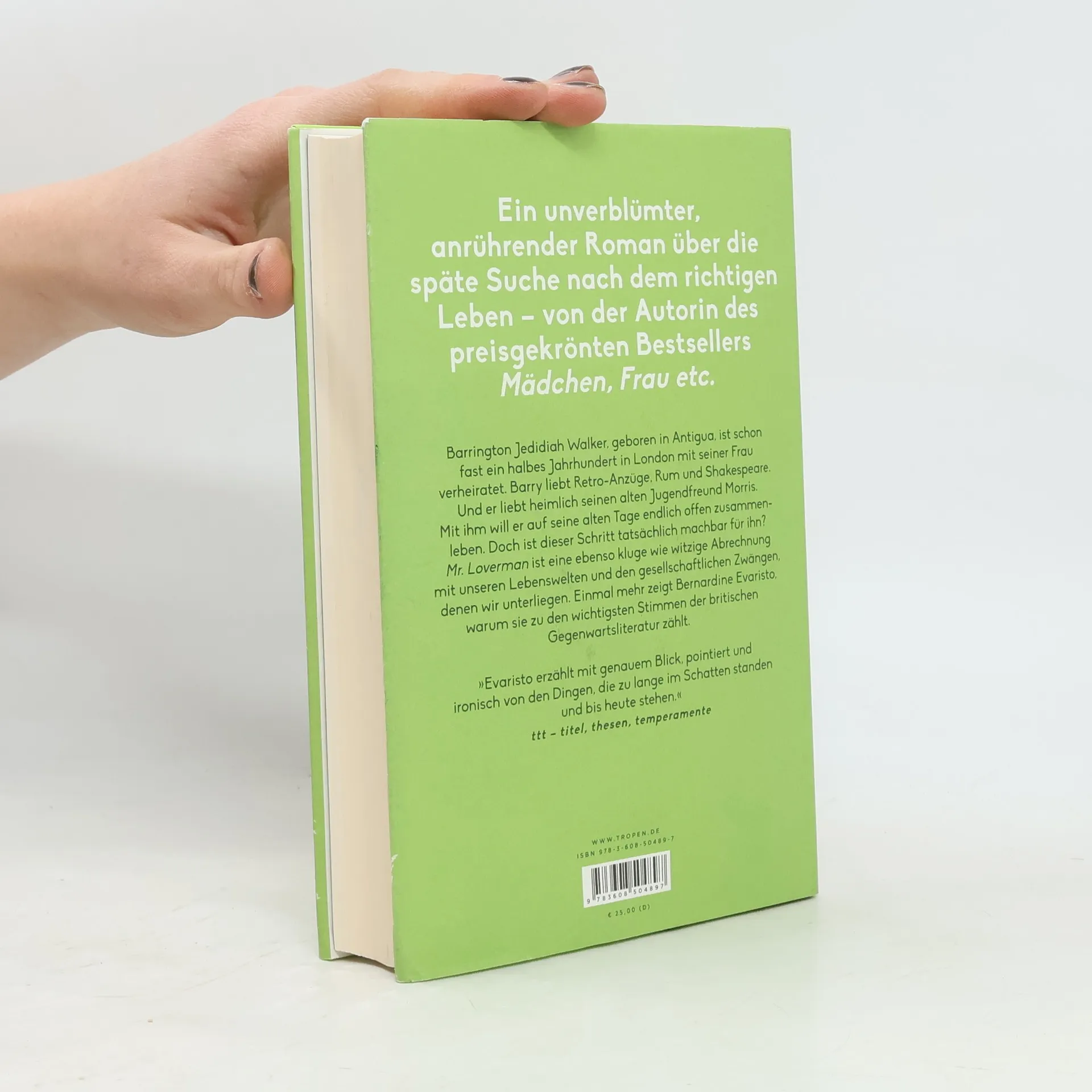 Ein unverblümter, anrührender Roman über die späte Suche nach dem richtigen Leben – von der Autorin des preisgekrönten Bestsellers Mädchen, Frau etc. Barrington Jedidiah Walker, in Antigua geboren, ist seit fast einem halben Jahrhundert mit seiner Frau Carmel in London verheiratet. Barry liebt Retro-Anzüge, Rum und Shakespeare, und heimlich seinen Jugendfreund Morris. Auf seine alten Tage möchte er offen mit Morris leben, doch ist dieser Schritt für ihn machbar? Der Roman ist eine kluge und witzige Auseinandersetzung mit den gesellschaftlichen Zwängen, die uns prägen. Barrington führt ein scheinbar perfektes Leben in Hackney, doch unter der Oberfläche verbirgt sich ein Doppelleben. Seit seiner Kindheit liebt er Morris, der ebenfalls aus Antigua stammt. Carmel, tief religiös und von ihrer Ehe enttäuscht, ahnt, dass Barry sie betrügt, ohne zu wissen, mit wem. Während die Ehe der beiden auf den Abgrund zusteuert, beschließt Barry, sich zu Morris zu bekennen. Mit trockenem Humor und scharfem Blick beleuchtet die Autorin die Irrtümer, die unseren Entscheidungen zugrunde liegen. Welche Konsequenzen erwarten uns, wenn wir uns treu bleiben wollen? Und was, wenn die Angst vor diesen Konsequenzen zu groß ist? Evaristo erzählt präzise und ironisch von Themen, die zu lange im Schatten standen.