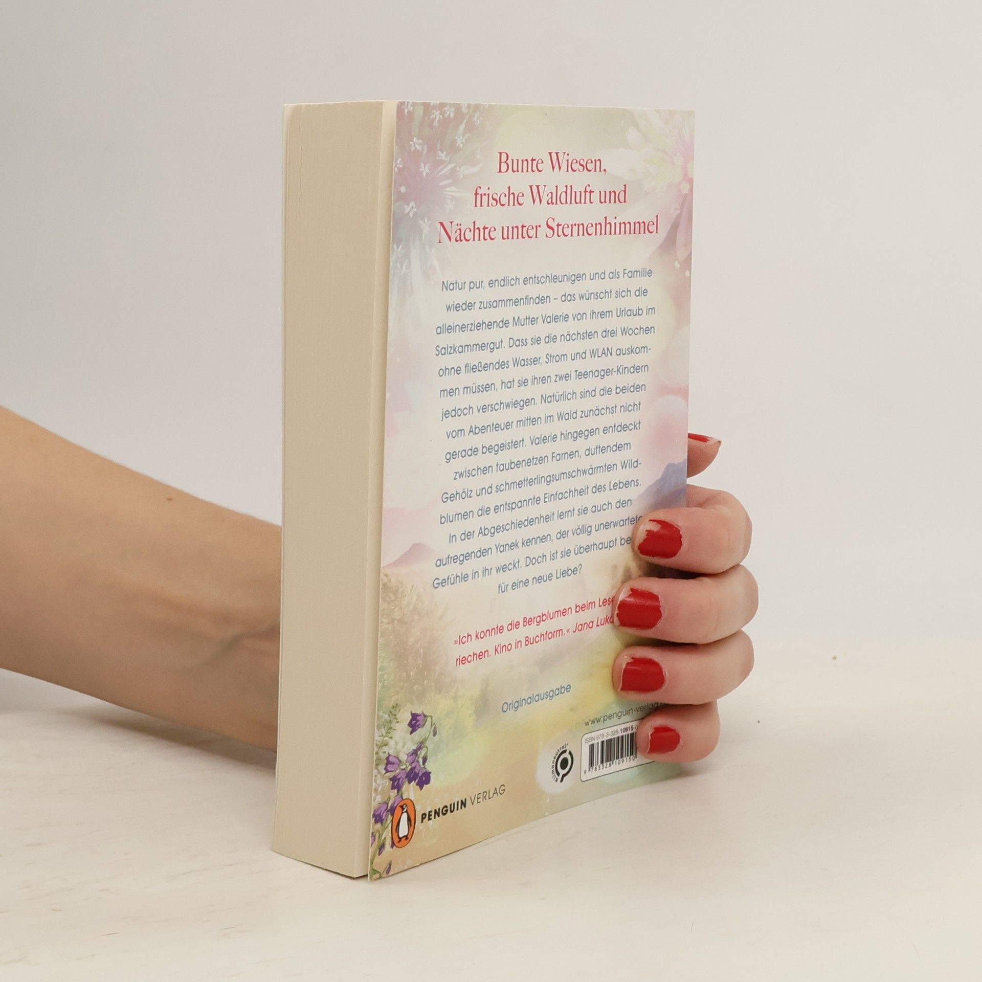 Bunte Wiesen, frische Waldluft und Nächte unter Sternenhimmel - ein sommerlicher Liebesroman voller Urlaubsflair Natur pur, endlich entschleunigen und als Familie wieder zusammenfinden – das wünscht sich die alleinerziehende Mutter Valerie von ihrem Urlaub im Salzkammergut. Dass sie die nächsten drei Wochen ohne fließendes Wasser, Strom und WLAN auskommen müssen, hat sie ihren zwei Teenager-Kindern jedoch verschwiegen. Natürlich sind die beiden vom Abenteuer mitten im Wald zunächst nicht gerade begeistert. Valerie hingegen entdeckt inmitten von taubenetzen Farnen, duftendem Gehölz und schmetterlingsumschwärmten Wildblumen die entspannte Einfachheit des Lebens. In der Abgeschiedenheit lernt sie auch den aufregenden Yanek kennen, der völlig unerwartete Gefühle in ihr weckt. Doch ist sie überhaupt bereit für eine neue Liebe?