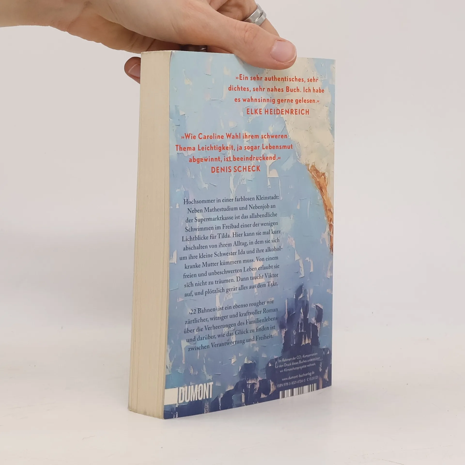 Tildas Tage sind strikt durchgetaktet: studieren, an der Supermarktkasse sitzen, sich um ihre kleine Schwester Ida kümmern und an schlechten Tagen auch um die Mutter. Zu dritt wohnen sie im traurigsten Haus der Fröhlichstraße in einer Kleinstadt, die Tilda hasst. Ihre Freunde sind längst weg, leben in Amsterdam oder Berlin, nur Tilda ist geblieben. Denn irgendjemand muss für Ida da sein, Geld verdienen, die Verantwortung tragen. Nennenswerte Väter gibt es keine, die Mutter ist alkoholabhängig. Eines Tages aber geraten die Dinge in Bewegung: Tilda bekommt eine Promotion in Berlin in Aussicht gestellt, und es blitzt eine Zukunft auf, die Freiheit verspricht. Und Viktor taucht auf, der große Bruder von Ivan, mit dem Tilda früher befreundet war. Viktor, der genau wie sie immer 22 Bahnen schwimmt. Doch als Tilda schon beinahe glaubt, es könnte alles gut werden, gerät die Situation zu Hause vollends außer Kontrolle. ›22 Bahnen‹ ist eine raue und gleichzeitig zärtliche Geschichte über die Verheerungen des Familienlebens und darüber, wie das Glück zu finden ist zwischen Verantwortung und Freiheit. »Caroline Wahl findet das Besondere im Alltäglichen und das Tröstliche im Schmerzvollen. Ein berührendes und feinsinniges Buch, mit dem man gern befreundet wäre.« BENEDICT WELLS »Ich bin durch ›22 Bahnen‹ gerauscht und hellauf begeistert. Herzerwärmend, fein, gnadenlos und richtig schön zugleich.« ALINA BRONSKY
