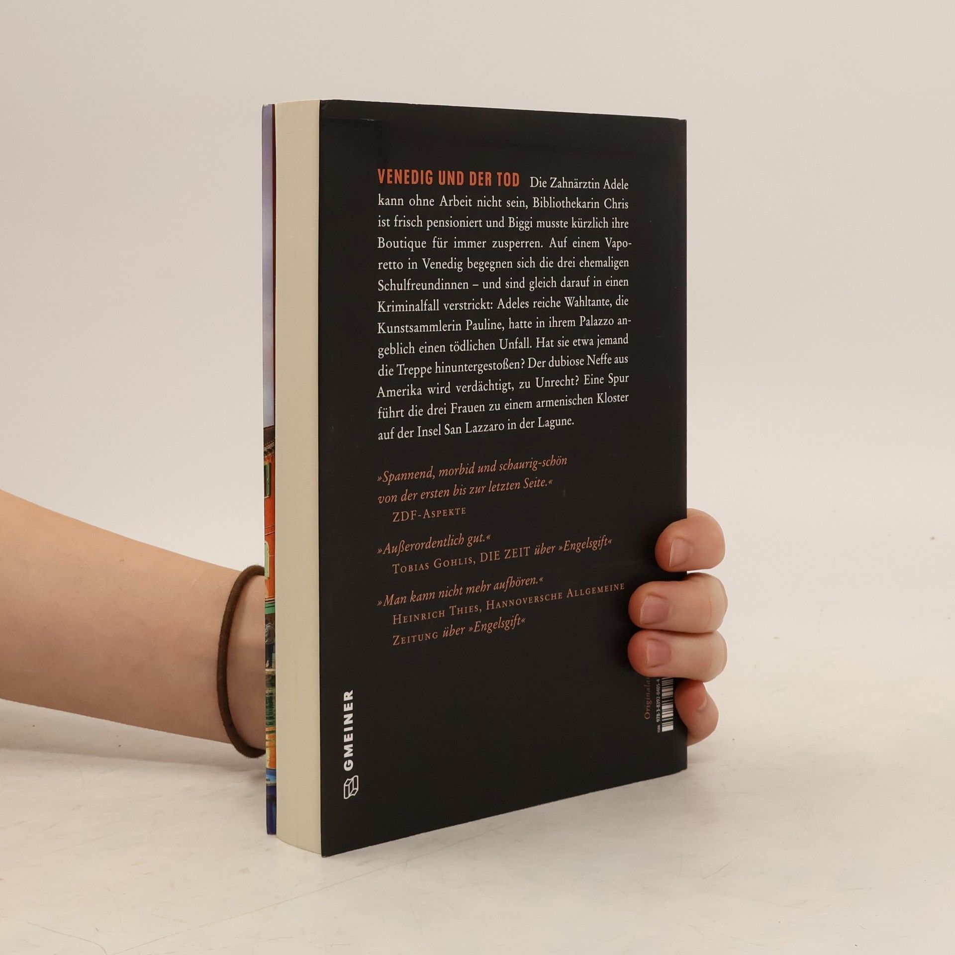 Die Zahnärztin Adele kann ohne Arbeit nicht sein, Bibliothekarin Chris ist frisch pensioniert und Biggi musste kürzlich ihre Boutique für immer zusperren. Auf einem Vaporetto in Venedig begegnen sich die drei ehemaligen Schulfreundinnen - und sind gleich darauf in einen Kriminalfall verstrickt: Adeles reiche Wahltante, die Kunstsammlerin Pauline, hatte in ihrem Palazzo angeblich einen tödlichen Unfall. Hat sie etwa jemand die Treppe hinuntergestoßen? Der dubiose Neffe aus Amerika wird verdächtigt, zu Unrecht? Eine Spur führt die drei Frauen zu einem armenischen Kloster auf der Insel San Lazzaro in der Lagune.