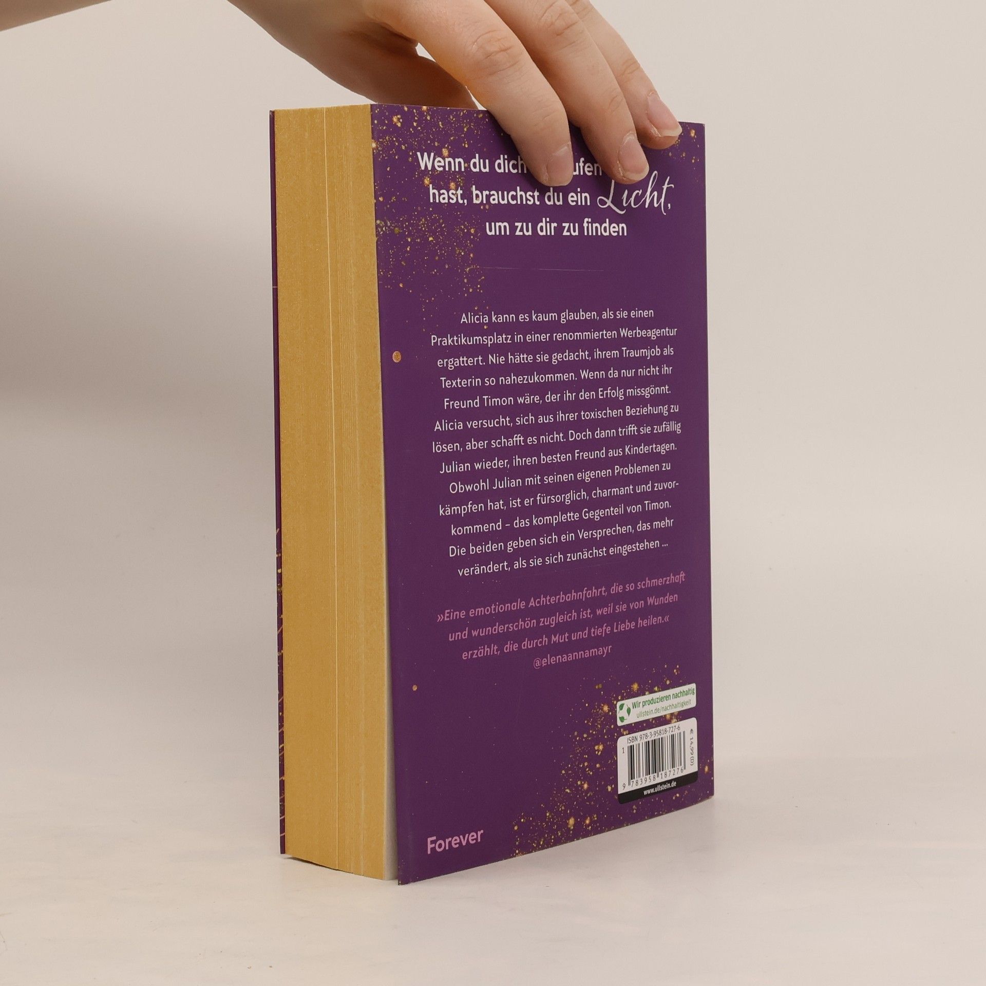 Wenn du dich verlaufen hast, brauchst du ein Licht, um zu dir zu finden Alicia kann es kaum glauben, als sie einen Praktikumsplatz in einer renommierten Werbeagentur ergattert. Nie hätte sie gedacht, ihrem Traumjob als Texterin so nahezukommen. Wenn da nur nicht ihr Freund Timon wäre, der ihr den Erfolg nicht gönnt. Alicia versucht, sich aus ihrer toxischen Beziehung zu lösen, aber schafft es nicht. Doch dann trifft sie zufällig Julian wieder, ihren besten Freund aus Kindertagen. Obwohl Julian mit seinen eigenen Problemen zu kämpfen hat, ist er fürsorglich, charmant und zuvorkommend – das komplette Gegenteil von Timon. Die beiden geben sich ein Versprechen, das mehr verändert, als sie sich eingestehen ... Die Light-in-the-Dark-Serie: 1) Wenn ich uns verliere - Wenn die Welle droht dich mitzureißen, brauchst du einen Anker, der dich hält 2) Wo du uns findest - Wenn deine Welt in Dunkelheit versinkt, brauchst du jemanden, der dir die Sonne zeigt 3) Was wir uns versprechen - Wenn du dich verlaufen hast, brauchst du ein Licht, um zu dir zu finden