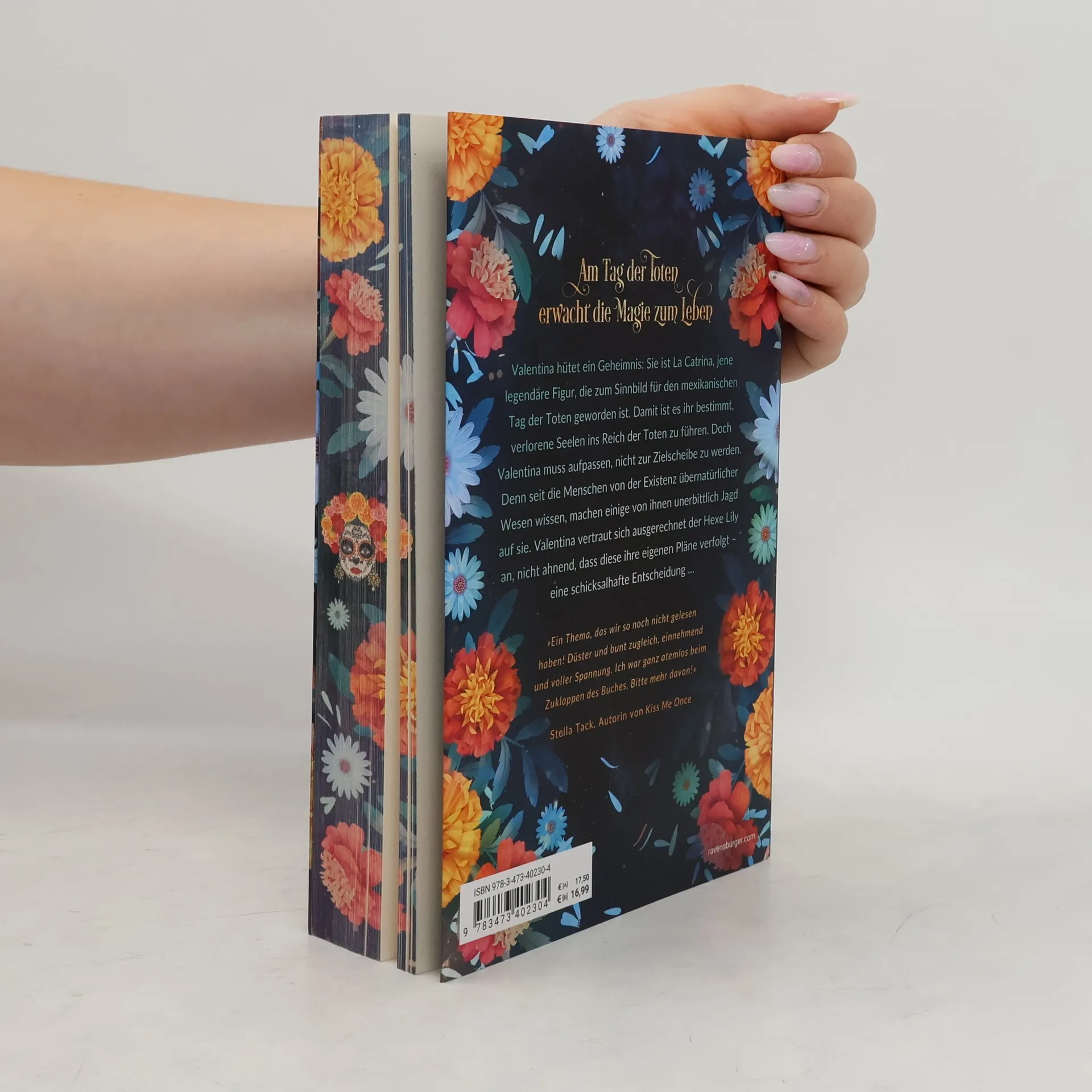 Am Tag der Toten erwacht die Magie zum Leben Valentina hütet ein Geheimnis: Sie ist La Catrina, jene legendäre Figur, die zum Sinnbild für den mexikanischen Tag der Toten geworden ist. Damit ist es ihr bestimmt, verlorene Seelen ins Reich der Toten zu führen. Doch Valentina muss aufpassen, nicht zur Zielscheibe zu werden. Denn seit die Menschen von der Existenz übernatürlicher Wesen wissen, machen einige von ihnen unerbittlich Jagd auf sie. Valentina vertraut sich ausgerechnet der Hexe Lily an, nicht ahnend, dass diese ihre eigenen Pläne verfolgt – eine schicksalhafte Entscheidung … *** Urban Romantasy vor der atmosphärischen Kulisse des Día de los Muertos! Episch. Traumhaft. Magisch! *** Entdecke die fantastisch-romantischen Buchwelten von Sandra Grauer bei Ravensburger: Flowers & Bones Band 1: Tag der Seelen Band 2: Kuss der Catrina Flame & Arrow Band 1: Drachenprinz Band 2: Elfenkriegerin Clans of London Band 1: Hexentochter Band 2: Schicksalsmagie