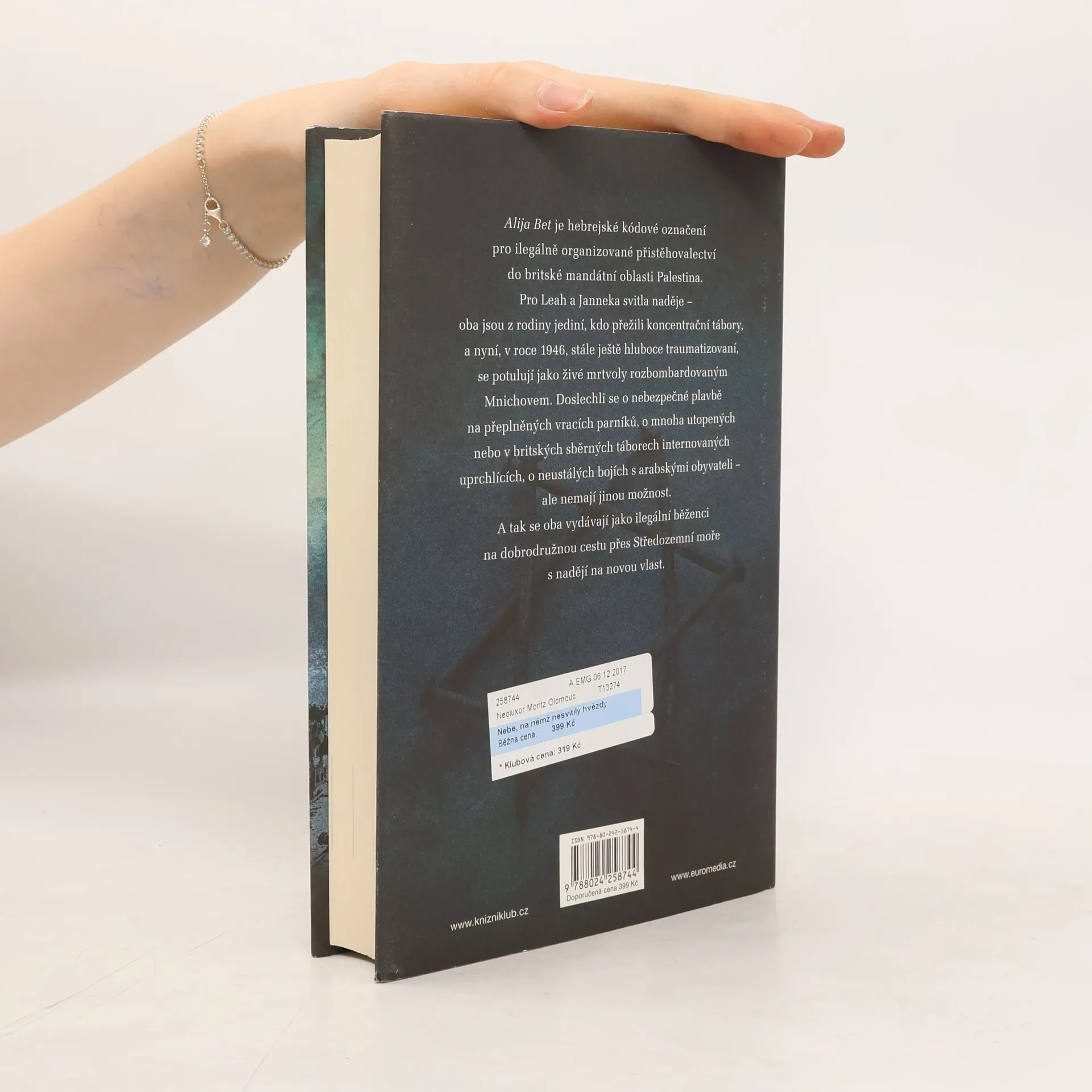 Alija Bet je hebrejské kódové označení pro ilegálně organizované přistěhovalectví do britské mandátní oblasti Palestina. Pro Leah a Janneka svitla na obzoru naděje – oba jsou z rodiny jediní, kdo přežili koncentrační tábory, a nyní, v roce 1946, se stále ještě hluboce traumatizovaní potulují jako živé mrtvoly rozbombardovaným Mnichovem. Doslechli se o nebezpečné plavbě na přeplněných vracích parníků, o mnoha utopených nebo v britských sběrných táborech internovaných uprchlících, o neustálých bojích s arabskými obyvateli – ale nemají jinou možnost. A tak se oba vydávají jako ilegální běženci na cestu přes Středozemní moře s nadějí na novou vlast.