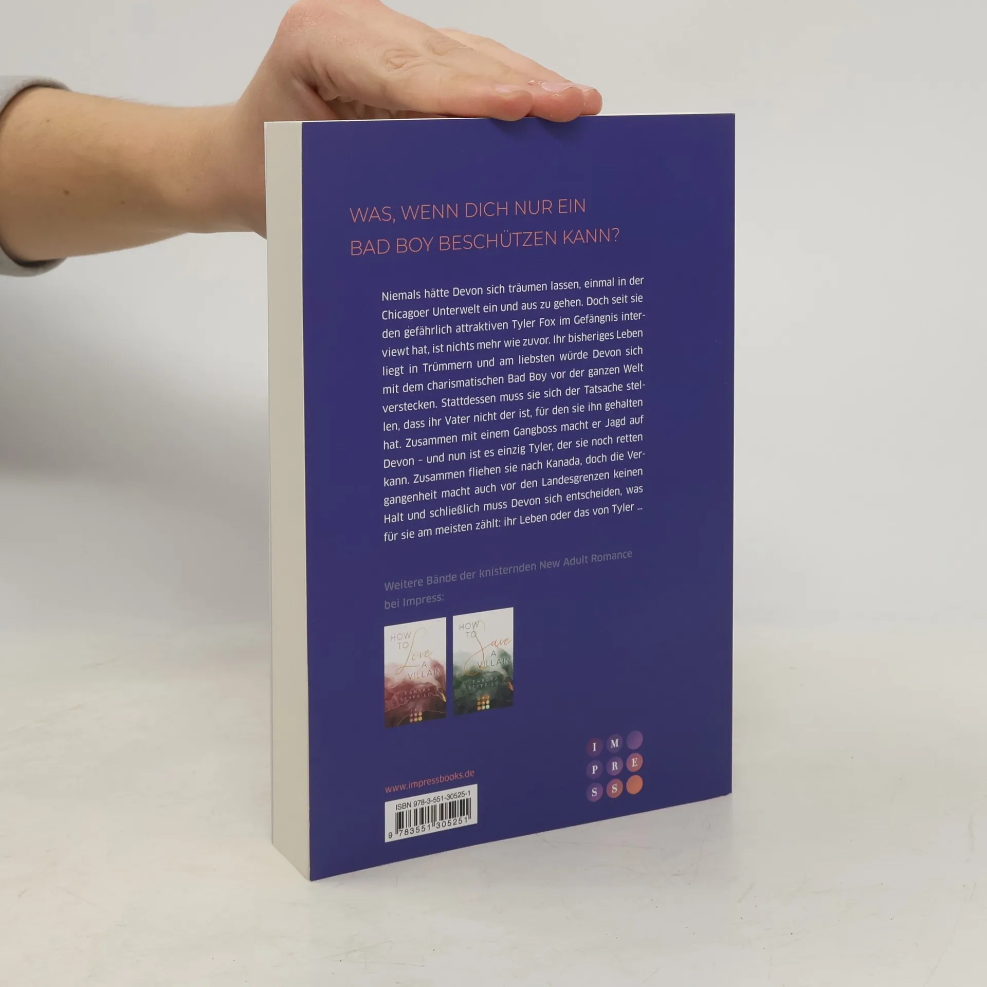 **Was ist, wenn dich nur ein Very Bad Boy beschützen kann?** Niemals hätte Devon sich träumen lassen, einmal in der Chicagoer Unterwelt ein und aus zu gehen. Doch seit sie den gefährlich attraktiven Tyler Fox im Gefängnis interviewt hat, ist nichts mehr wie zuvor. Ihr bisheriges Leben liegt in Trümmern und am liebsten würde Devon sich mit dem charismatischen Bad Boy vor der ganzen Welt verstecken. Stattdessen muss sie sich der Tatsache stellen, dass ihr Vater nicht der ist, für den sie ihn gehalten hat. Zusammen mit einem Gangboss macht er Jagd auf Devon – und nun ist es einzig Tyler, der sie noch retten kann. Zusammen fliehen sie nach Kanada, doch die Vergangenheit macht auch vor den Landesgrenzen keinen Halt und schließlich muss Devon sich entscheiden, was für sie am meisten zählt: ihr Leben oder das von Tyler … //Dies ist der zweite Band der knisternden New Adult Romance »Chicago-Love«. Alle Bände der Reihe bei Impress: -- How to Love a Villain (Chicago-Love 1) -- How to Keep a Villain (Chicago-Love 2) -- How to Save a Villain (Chicago-Love 3)//