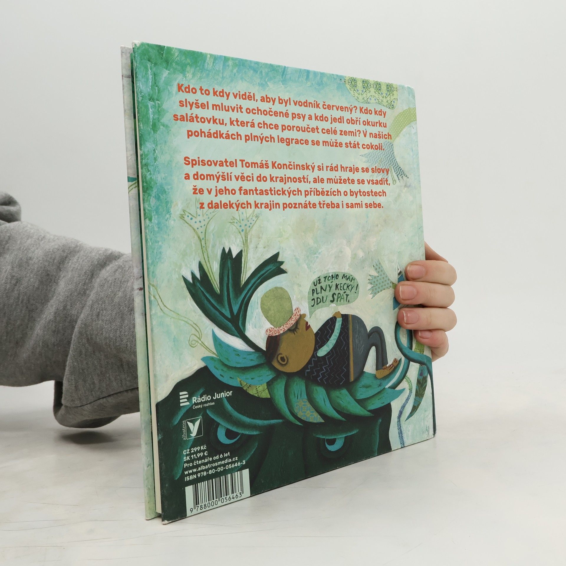 Kdo to kdy viděl, aby byl vodník červený? Kdo kdy slyšel mluvit psy a kdo jedl obří okurku salátovku, která chce poroučet celé zemi? V našich pohádkách plných legrace se může stát cokoli. Autor Tomáš Končinský si rád hraje se slovy a domýšlí věci do krajností, ale vsaďte se, že v jeho fantastických příbězích o bytostech z dalekých krajin poznáte i sami sebe. Nebo vy snad někdy (jasně že jen výjimečně) nebýváte líní, nafoukaní nebo ustrašení?