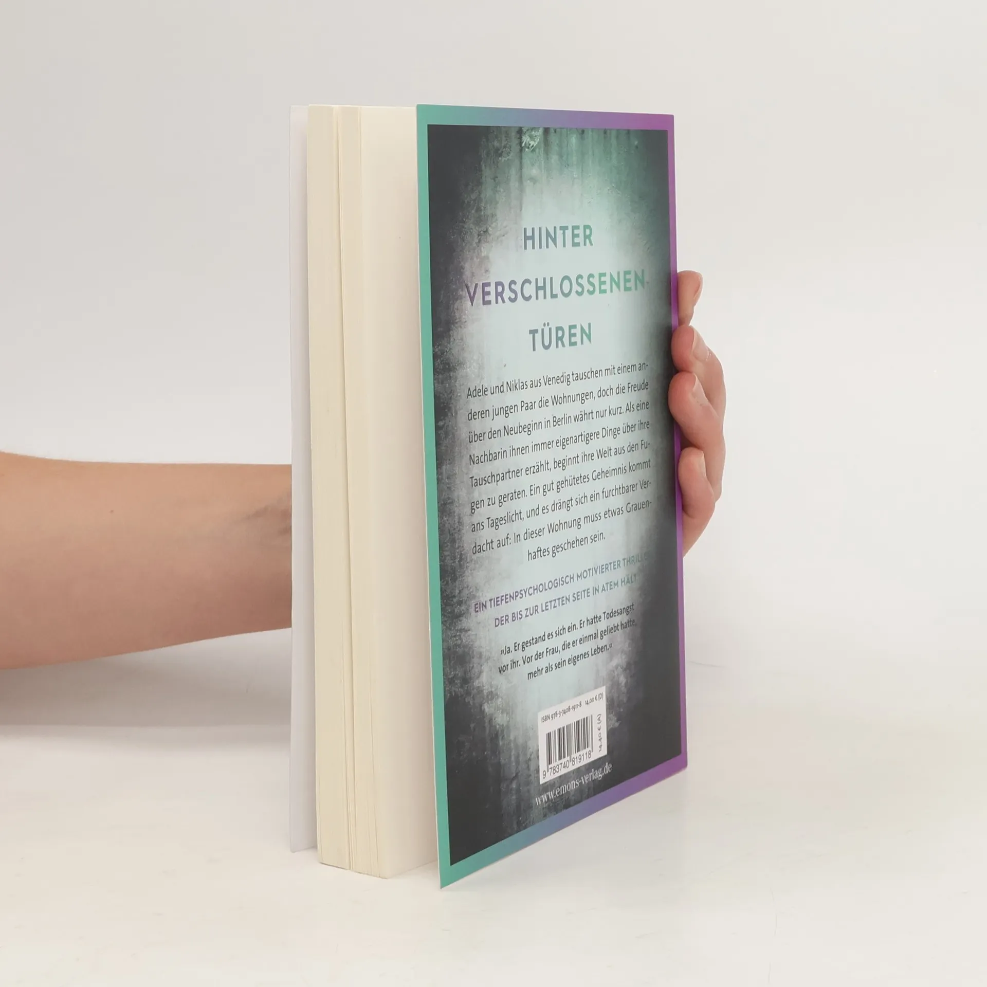 Ein tiefenpsychologisch motivierter Thriller, der bis zur letzten Seite in Atem hält. Adele und Niklas aus Venedig tauschen mit einem anderen jungen Paar die Wohnungen, doch die Freude über den Neubeginn in Berlin währt nur kurz. Als eine Nachbarin ihnen immer eigenartigere Dinge über ihre Tauschpartner erzählt, beginnt ihre Welt aus den Fugen zu geraten. Ein gut gehütetes Geheimnis kommt ans Tageslicht, und es drängt sich ein furchtbarer Verdacht auf: In dieser Wohnung muss etwas Grauenhaftes geschehen sein.