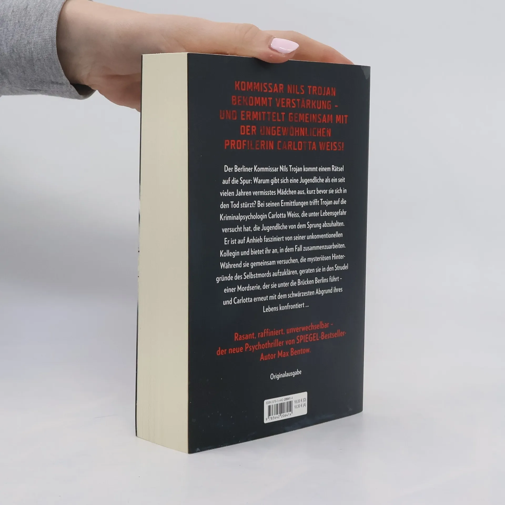 Der Berliner Kommissar Nils Trojan kommt einem Rätsel auf die Spur: Warum gibt sich eine Jugendliche fälschlicherweise als ein seit vielen Jahren vermisstes Mädchen aus, kurz bevor sie in den Tod springt? Bei seinen Ermittlungen trifft er auf die Kriminalpsychologin Carlotta Weiss, die unter Lebensgefahr versucht hat, die Jugendliche von dem Sprung abzuhalten. Trojan ist auf Anhieb fasziniert von seiner unkonventionellen Kollegin und bietet ihr an, in dem Fall zusammenzuarbeiten. Während sie gemeinsam versuchen, die mysteriösen Hintergründe des Selbstmords aufzuklären, geraten sie in den Strudel einer Mordserie, der sie unter die Brücken Berlins führt – und Carlotta erneut mit dem schwärzesten Abgrund ihres Lebens konfrontiert …