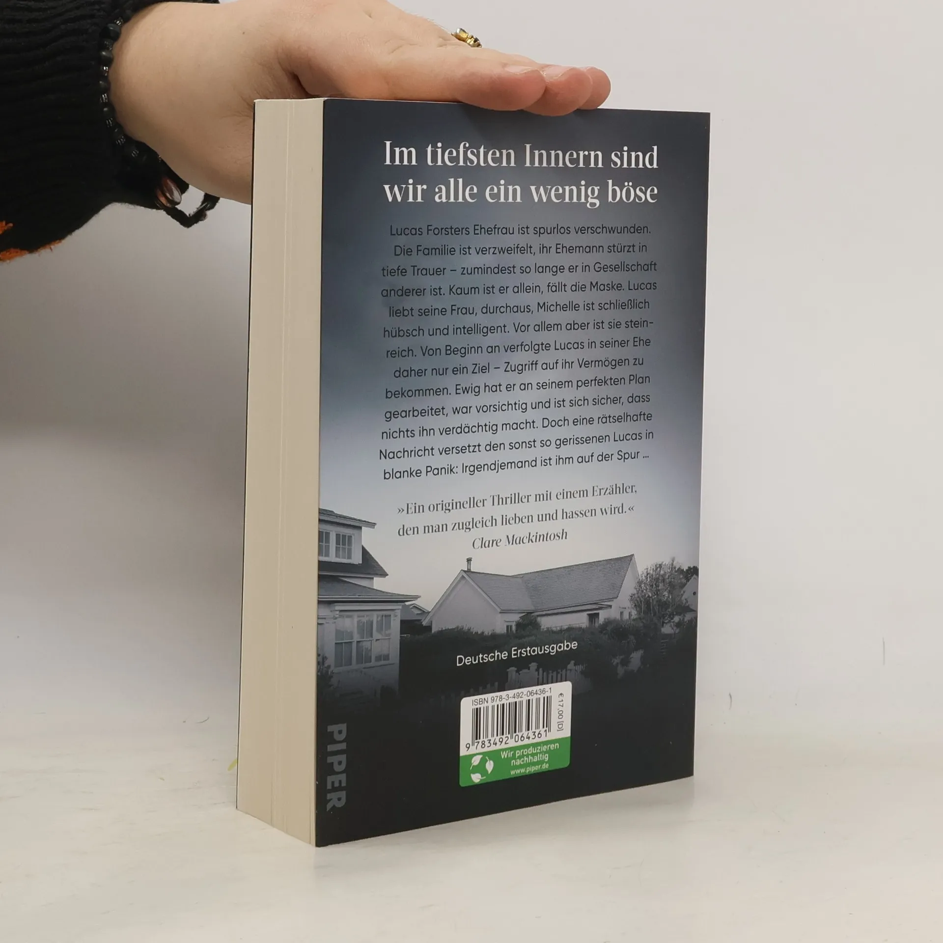 Erst liebe ich sie. Dann töte ich sie. Lucas Foresters Ehefrau ist spurlos verschwunden. Die Familie ist verzweifelt, ihr Mann stürzt in tiefe Trauer. Zumindest bis er allein ist, und die Maske fällt. Lucas liebt seine Frau durchaus, sie ist hübsch und intelligent. Vor allem aber ist sie steinreich. Sein lang ersehntes Ziel – er wollte Zugriff auf ihr Vermögen – ist endlich in greifbarer Nähe. Lucas hat ewig an seinem perfekten Plan gearbeitet, war vorsichtig und ist sich sicher, dass nichts ihn verraten kann. Doch eine rätselhafte Nachricht versetzt den sonst so gerissenen Lucas in blanke Panik: Irgendjemand ist ihm auf der Spur … Ein böser und brillanter Thriller In diesem Thriller mit Nervenkitzel schreibt Hannah Mary McKinnon über einen charmanten, cleveren und der perfekten Schwiegersohn, hinter dem sich jedoch ein Gentlemankiller vom Feinsten verbirgt.