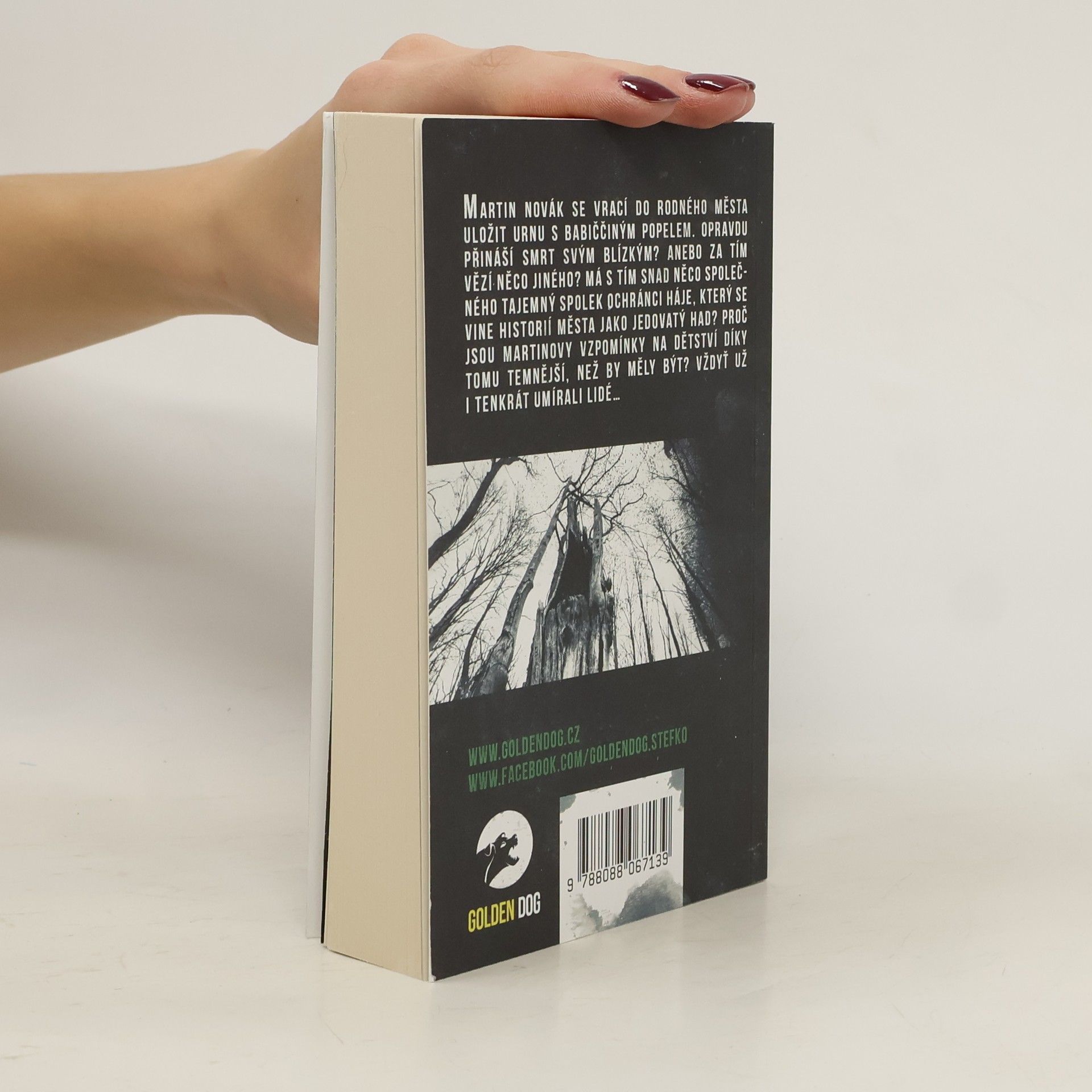 Martin Novák se vrací do rodného města uložit urnu s babiččiným popelem. Opravdu přináší smrt svým blízkým? Anebo za tím vězí něco jiného? Má s tím snad něco společného tajemný spolek Ochránci Háje, který se vine historií města jako jedovatý had? Proč jsou Martinovy vzpomínky na dětství díky tomu temnější, než by měly být? Vždyť už tenkrát umírali lidé...