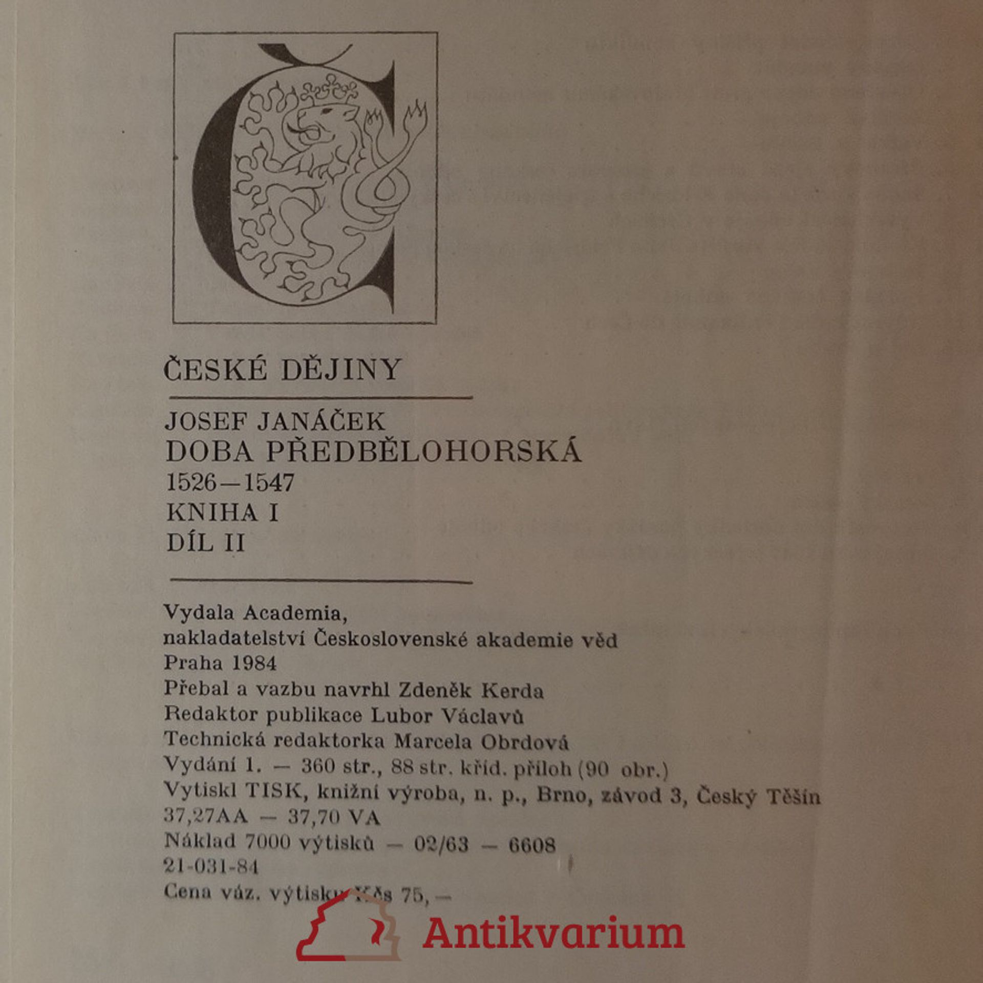 Doba předbělohorská : 1526-1547. Kniha I, díl 1. a 2., Josef Janáček