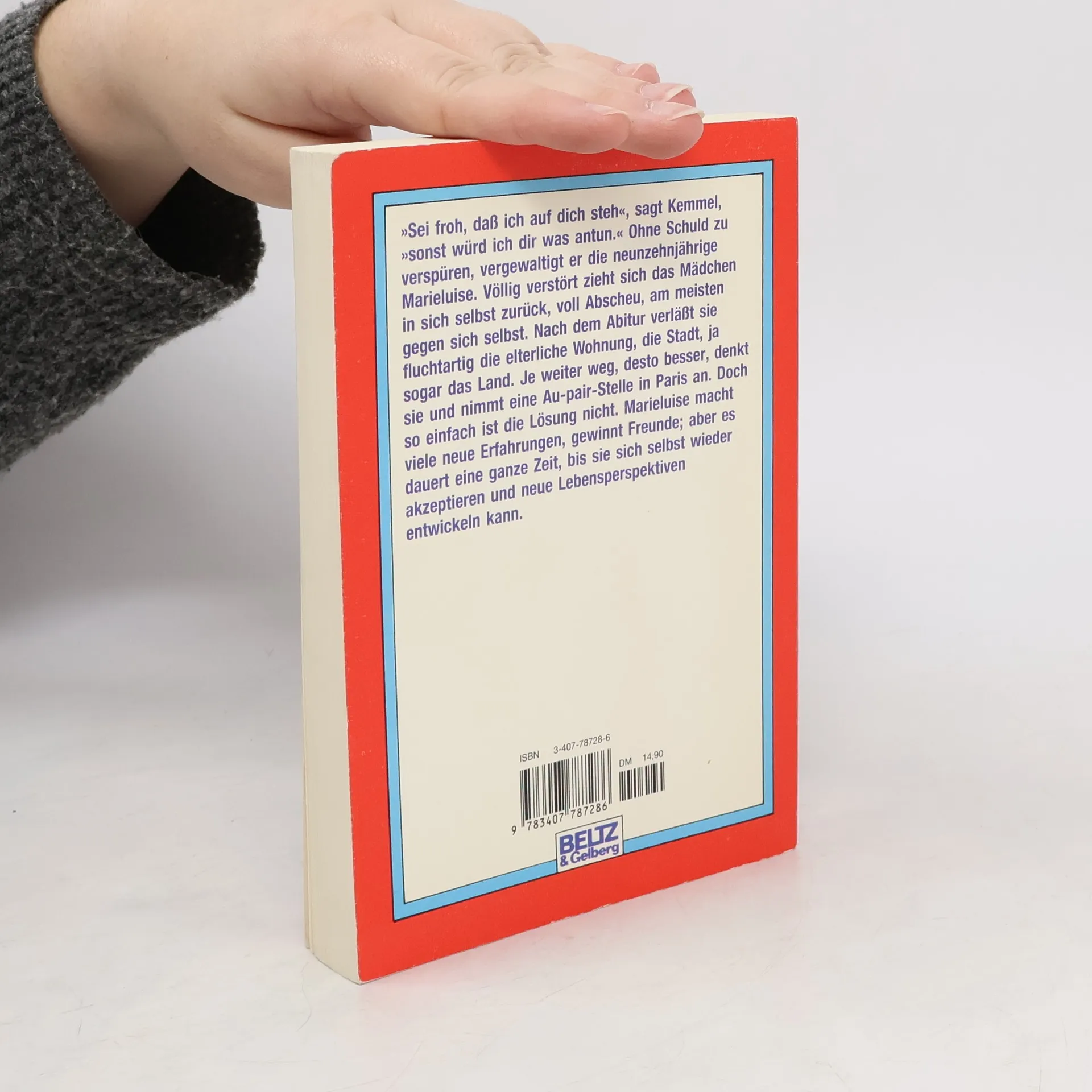 „Sei froh, daß ich auf dich steh“, sagt Kemmel, „sonst würd ich dir was antun“. Ohne Schuld zu verspüren, vergewaltigt er die neunzehnjährige Marieluise. Völlig verstört nach einer Vergewaltigung zieht sich Marieluise in sich selbst zurück, voll Abscheu, am meisten gegen sich selbst. Nach dem Abitur verläßt sie fluchtartig die elterliche Wohnung, die Stadt, ja sogar das Land. Je weiter weg, desto besser, denkt sie und nimmt eine Au-pair-Stelle in Paris an. Doch so einfach ist die Lösung nicht, Marieluise macht viele neue Erfahrungen, gewinnt Freunde; aber es dauert eine ganze Zeit, bis sie sich selbst wieder akzeptieren und neue Lebensperspektiven entwickeln kann.
